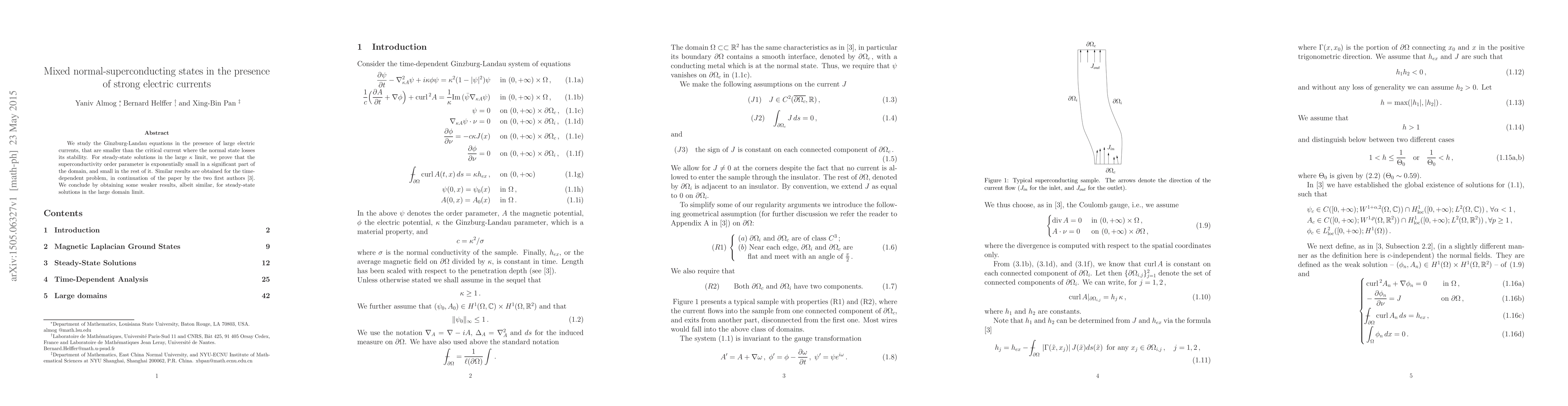 We study the Ginzburg-Landau equations in the presence of large electric currents, that are smaller than the critical current where the normal state losses its stability. For steady-state solutions in the large $\kappa$ limit, we prove that the superconductivity order parameter is exponentially small in a significant part of the domain, and small in the rest of it. Similar results are obtained for the time-dependent problem, in continuation of the paper by the two first authors [3]. We conclude by obtaining some weaker results, albeit similar, for steady-state solutions in the large domain limit.