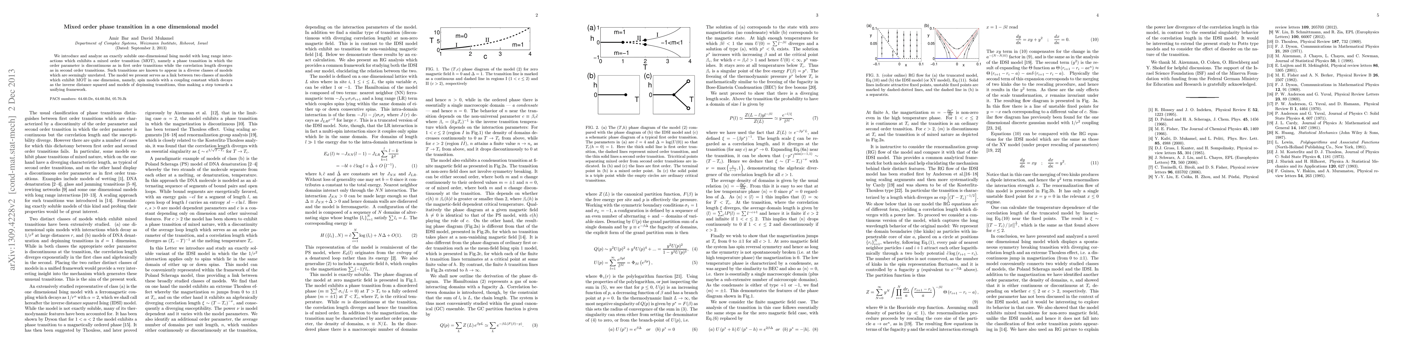 We introduce and analyze an exactly soluble one-dimensional Ising model with long range interactions which exhibits a mixed order transition (MOT), namely a phase transition in which the order parameter is discontinuous as in first order transitions while the correlation length diverges as in second order transitions. Such transitions are known to appear in a diverse classes of models which are seemingly unrelated. The model we present serves as a link between two classes of models which exhibit MOT in one dimension, namely, spin models with a coupling constant which decays as the inverse distance squared and models of depinning transitions, thus making a step towards a unifying framework.