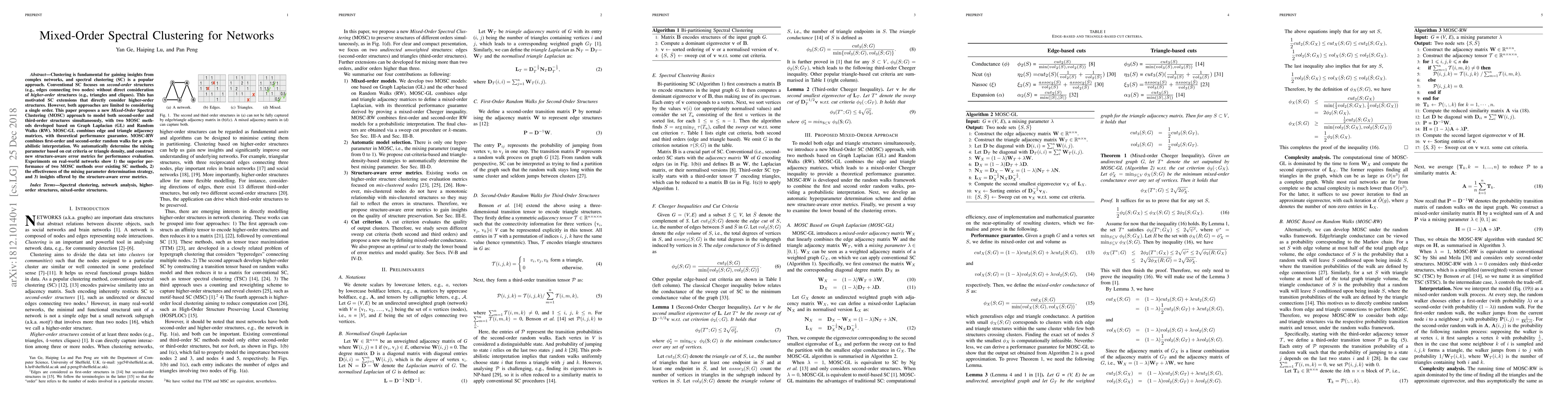 This paper introduces Mixed-Order Spectral Clustering (MOSC) for networks, combining second-order and third-order structures to enhance clustering. It proposes two MOSC methods based on Graph Laplacian and Random Walks, demonstrating superior performance over conventional spectral clustering methods.