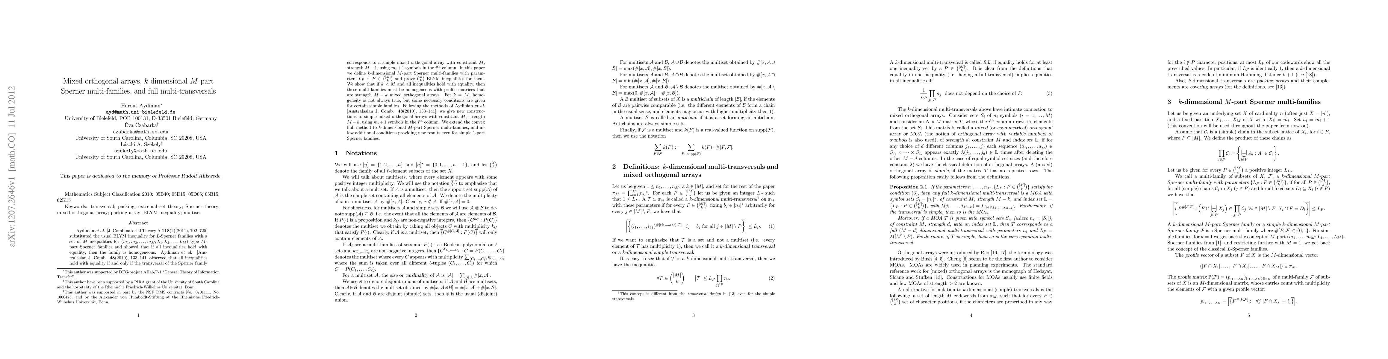 family corresponds to a simple mixed orthogonal array with constraint M,