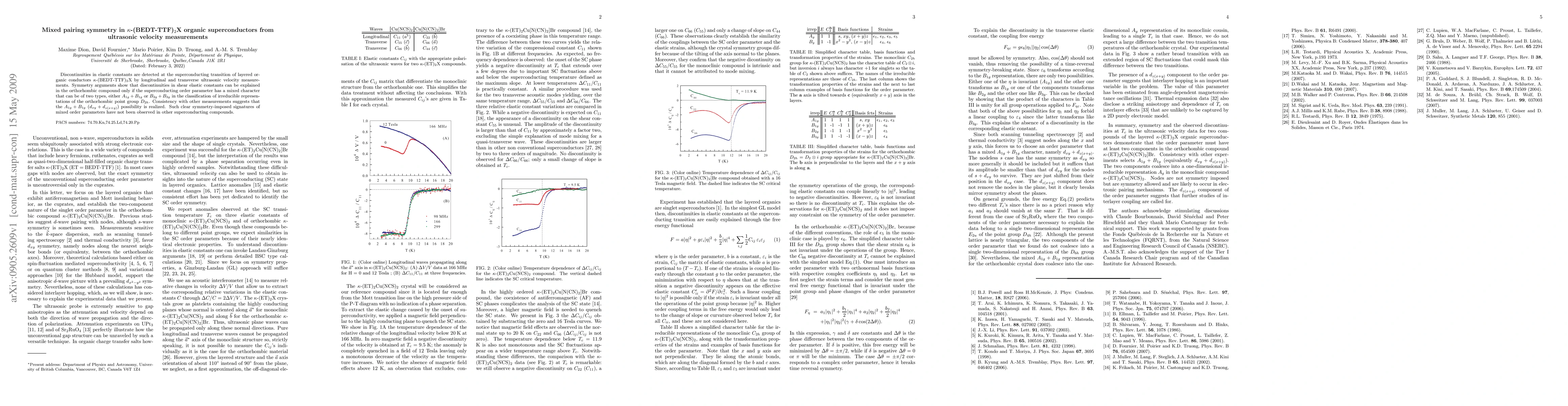 This study reveals discontinuities in elastic constants at the superconducting transition in \kappa-(BEDT-TTF)_{2}X organic superconductors, indicating a mixed pairing symmetry. The findings suggest the order parameter is likely of the A_{1g}+B_{1g} type, a unique signature not observed in other superconducting compounds.
