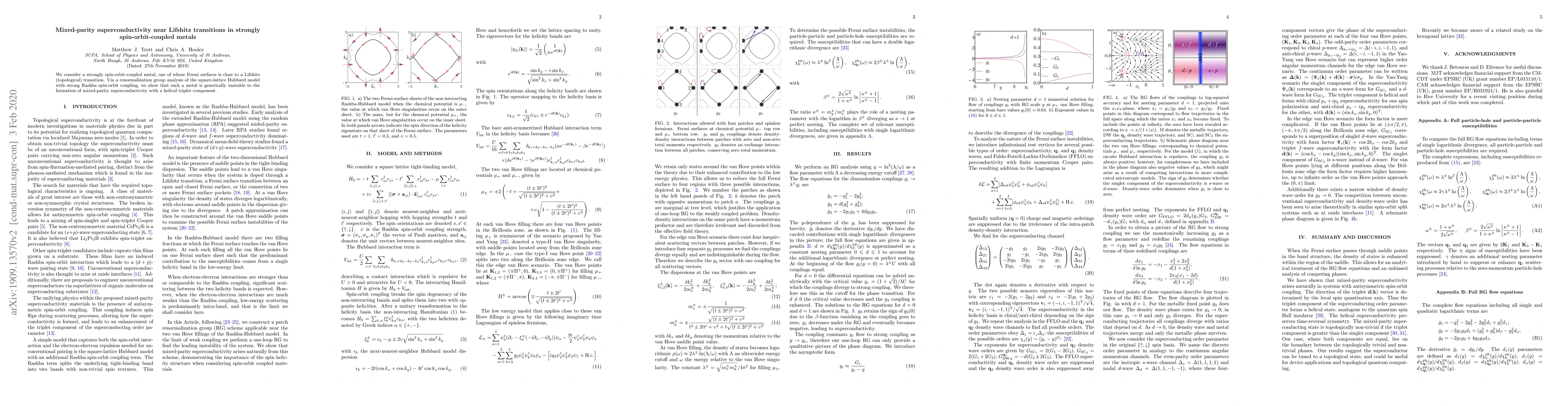 This research demonstrates that a strongly spin-orbit-coupled metal near a Lifshitz transition is prone to developing mixed-parity superconductivity, including a helical triplet component, through a renormalization group analysis of the Hubbard model.