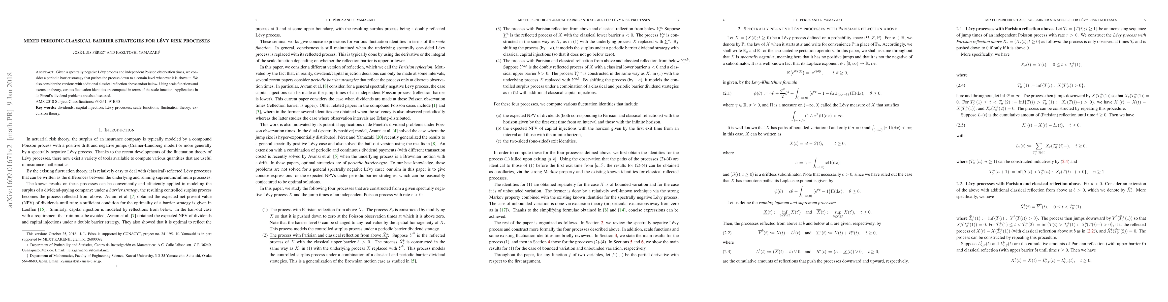 Given a spectrally negative L\'evy process and independent Poisson observation times, we consider a periodic barrier strategy that pushes the process down to a certain level whenever it is above it. We also consider the versions with additional classical reflection above and/or below. Using scale functions and excursion theory, various fluctuation identities are computed in terms of the scale function. Applications in de Finetti's dividend problems are also discussed.