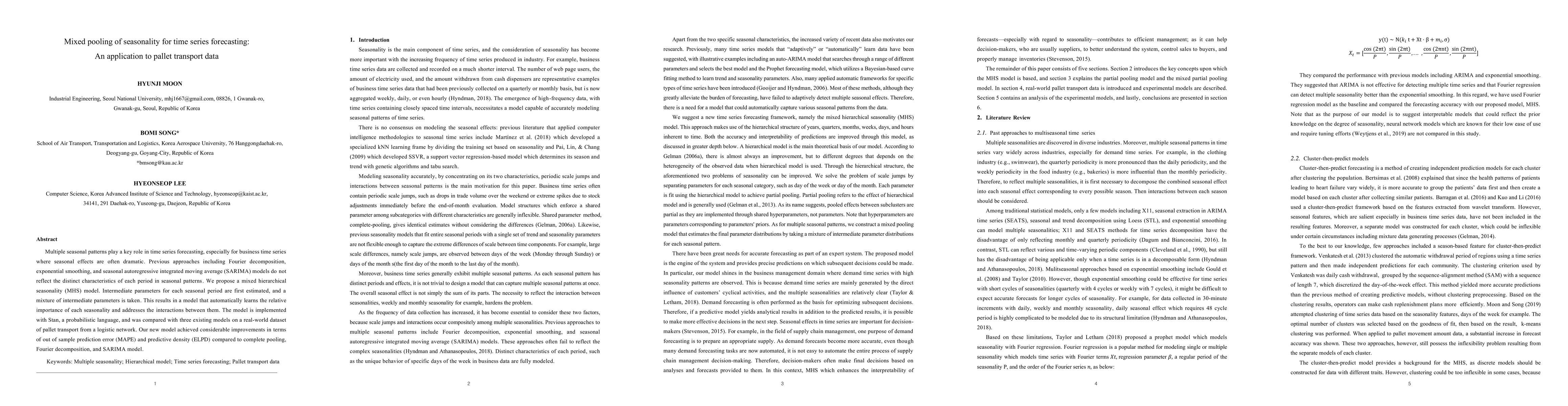 The research introduces a Mixed Hierarchical Seasonality (MHS) model for time series forecasting, addressing multiple seasonal patterns in business data. This model outperforms traditional methods like Fourier decomposition and SARIMA, demonstrating improved prediction accuracy on a real-world pallet transport dataset.