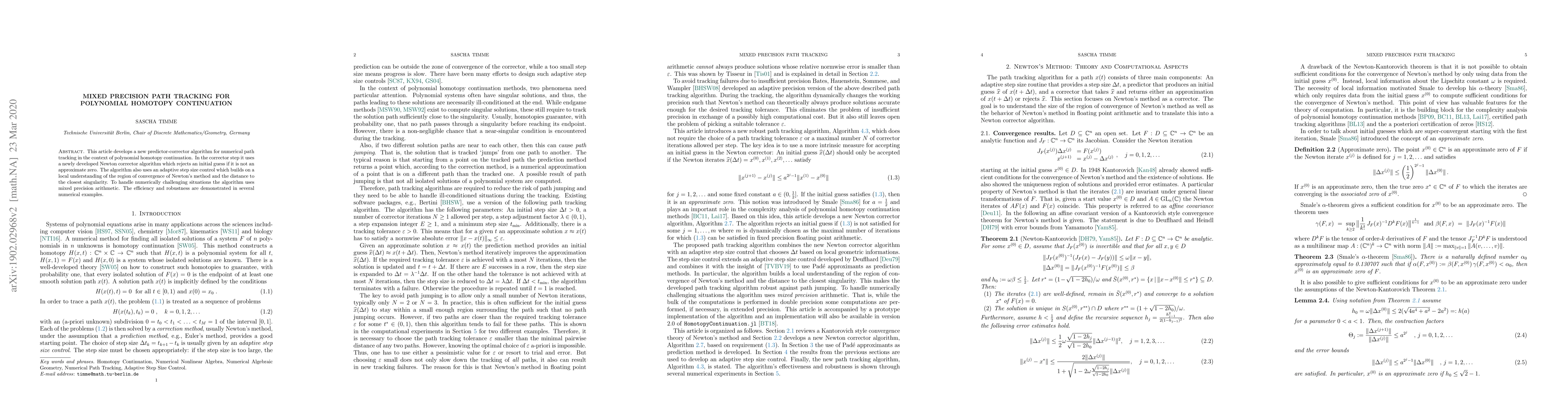The development of a novel mixed precision arithmetic scheme for polynomial homotopy continuation, which significantly improves the algorithm's numerical stability and accuracy.