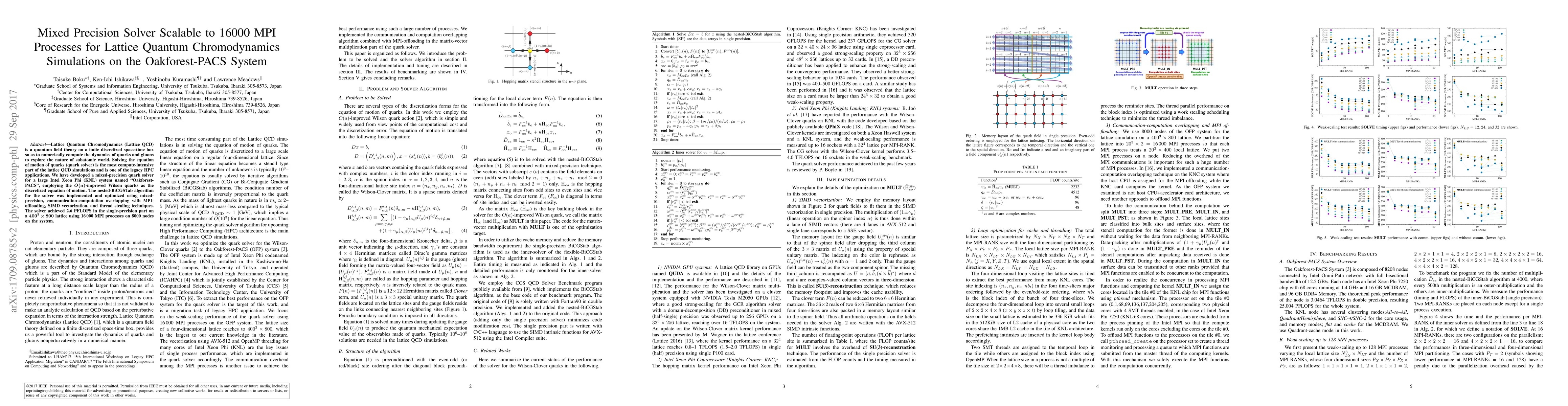This paper presents a mixed-precision quark solver for lattice QCD simulations on the Oakforest-PACS system, achieving 2.6 PFLOPS using 16000 MPI processes. The solver employs optimized nested-BiCGSTab algorithm, mixed-precision, and various parallel computing techniques to handle the compute-intensive quark dynamics.