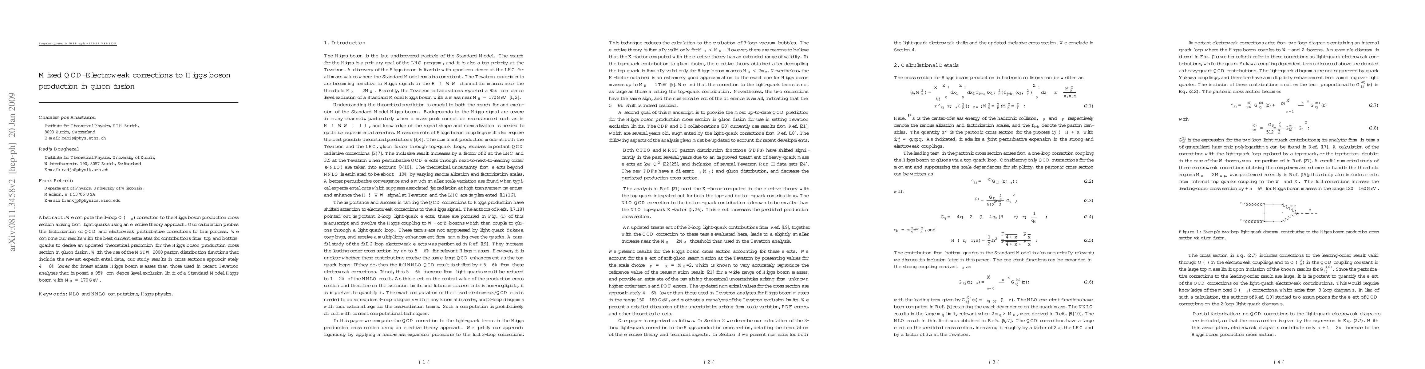 This paper computes the 3-loop QCD-electroweak corrections to Higgs boson production via gluon fusion, combining these with top and bottom quark contributions to refine the theoretical prediction. The updated cross sections are 4-6% lower than recent Tevatron analyses, impacting the exclusion limits for a Standard Model Higgs boson.