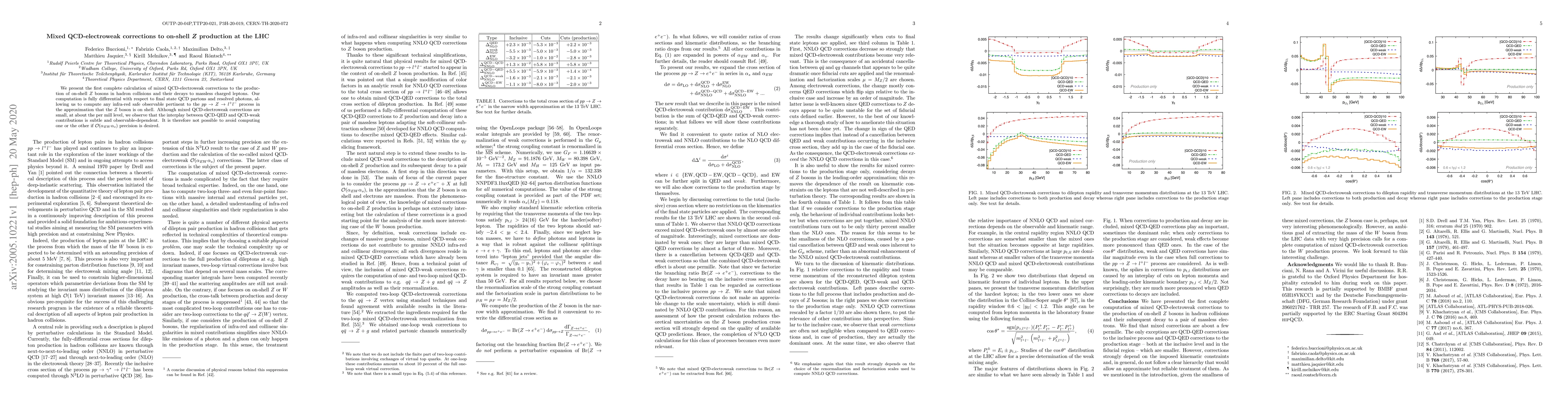 This paper presents the first complete calculation of mixed QCD-electroweak corrections for on-shell $Z$ boson production at the LHC, including their decays to leptons. The study shows that while these corrections are small, their precise impact depends on the observable, necessitating the computation of both QCD-QED and QCD-weak contributions for ${\cal O}(\alpha_{EW} \alpha_s)$ precision.