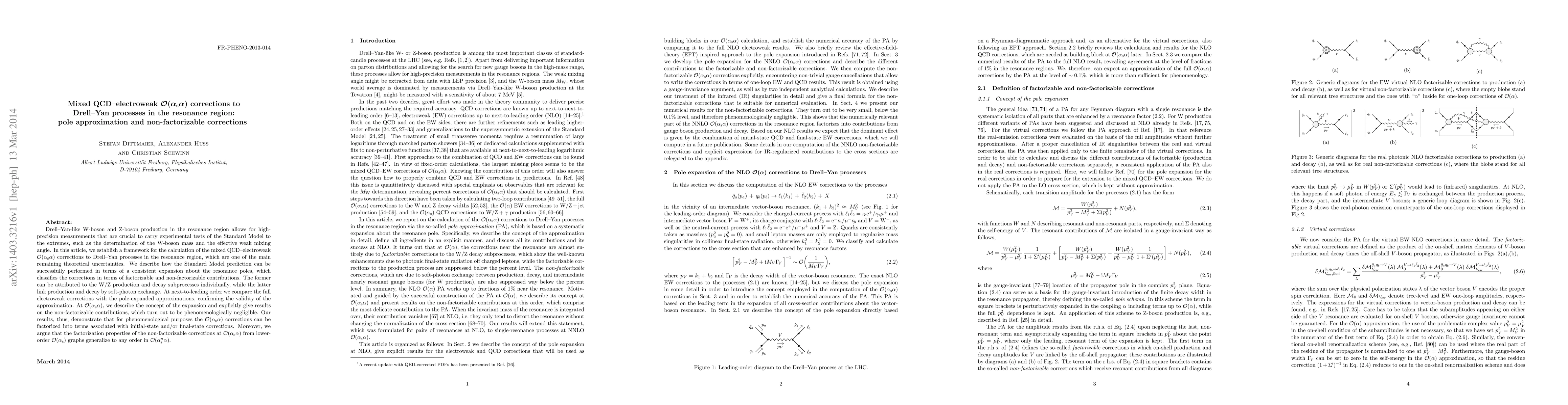 This paper establishes a framework for calculating mixed QCD-electroweak corrections to Drell-Yan processes in the resonance region, addressing a significant theoretical uncertainty. It introduces a pole approximation and categorizes corrections into factorizable and non-factorizable contributions, showing that the non-factorizable contributions are negligible, thus allowing for factorization of O(\alpha_s\alpha) corrections for phenomenological applications.