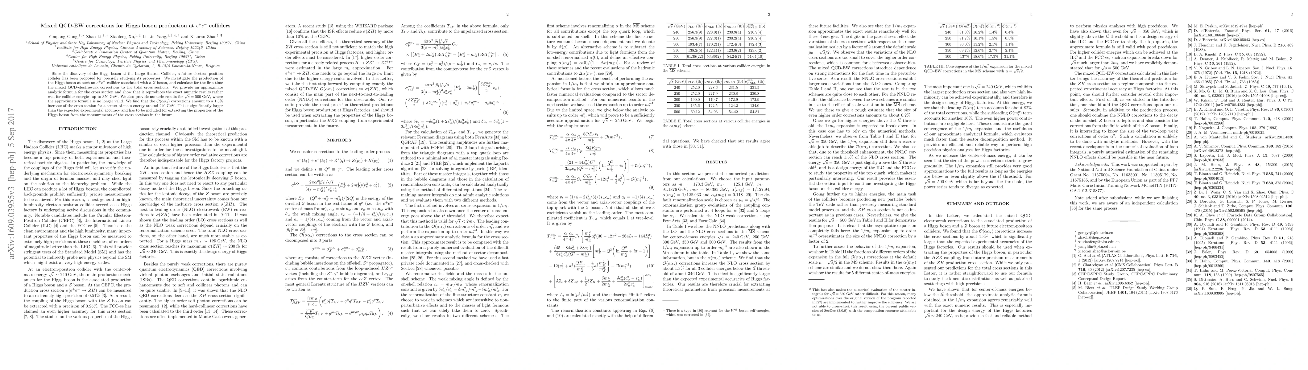 This paper investigates mixed QCD-electroweak corrections for Higgs boson production at $e^+e^-$ colliders, finding that $\mathcal{O}(\alpha\alpha_s)$ corrections increase the cross section by 1.3% at 240 GeV, a significant effect that must be accounted for in future precision measurements. An approximate analytic formula is provided for energies up to 350 GeV.