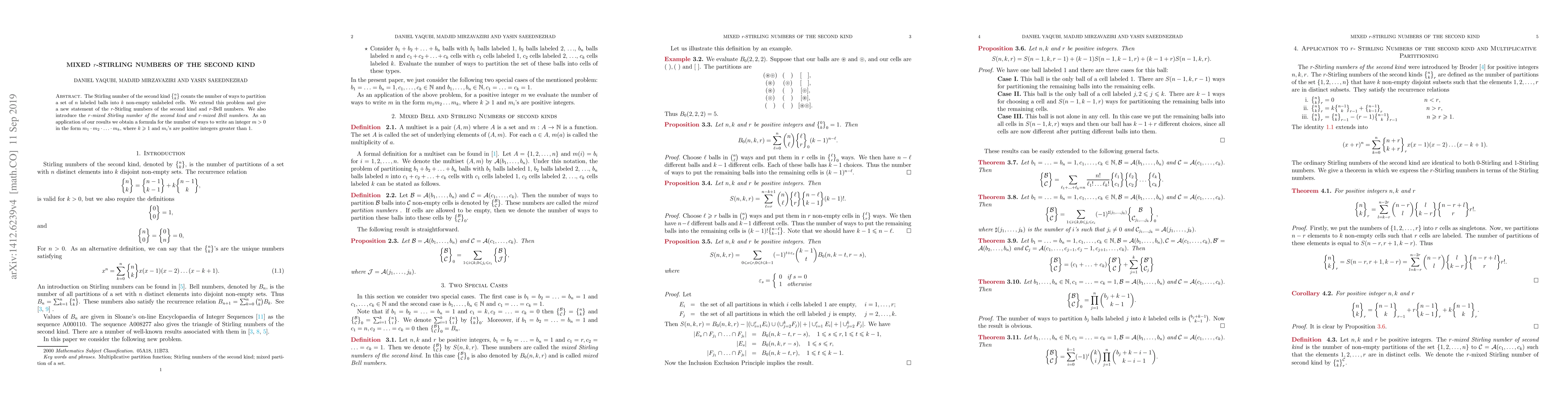 This paper extends the concept of Stirling numbers of the second kind to mixed partitions, introducing mixed r-Stirling numbers that count ways to partition labeled balls into labeled cells. It also presents new formulations for $r$-Stirling numbers of the second kind and $r$-mixed Bell numbers, along with an evaluation of the number of ways to express a positive integer as a product of integers greater than 1.