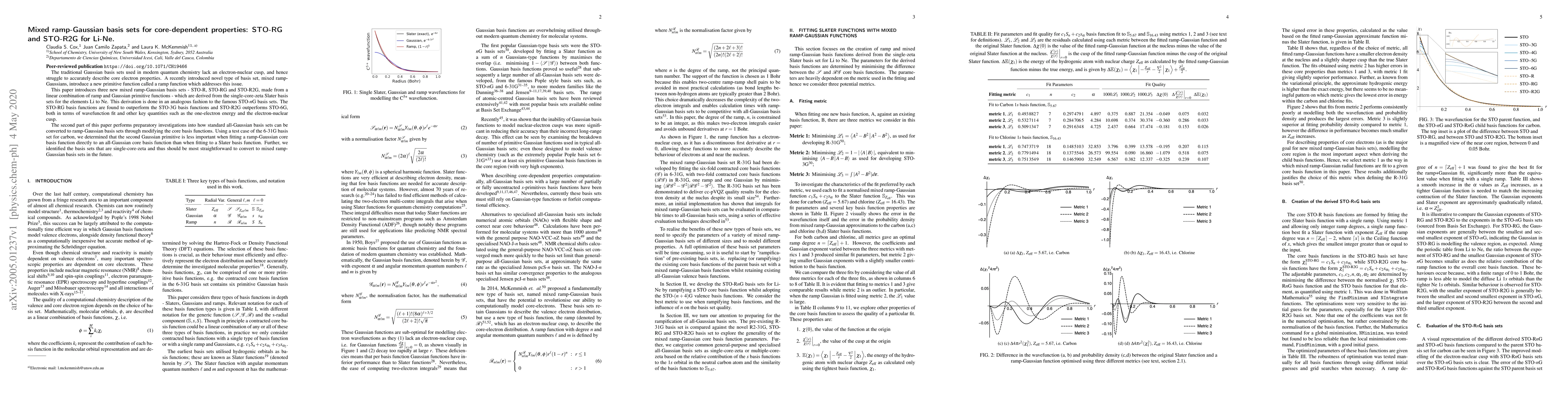 The traditional Gaussian basis sets used in modern quantum chemistry lack an electron-nuclear cusp, and hence struggle to accurately describe core electron properties. A recently introduced novel type of basis set, mixed ramp-Gaussians, introduce a new primitive function called a ramp function which addresses this issue. This paper introduces three new mixed ramp-Gaussian basis sets - STO-R, STO-RG and STO-R2G, made from a linear combination of ramp and Gaussian primitive functions - which are derived from the single-core-zeta Slater basis sets for the elements Li to Ne. This derivation is done in an analogous fashion to the famous STO-$n$G basis sets. The STO-RG basis functions are found to outperform the STO-3G basis functions and STO-R2G outperforms STO-6G, both in terms of wavefunction fit and other key quantities such as the one-electron energy and the electron-nuclear cusp. The second part of this paper performs preparatory investigations into how standard all-Gaussian basis sets can be converted to ramp-Gaussian basis sets through modifying the core basis functions. Using a test case of the 6-31G basis set for carbon, we determined that the second Gaussian primitive is less important when fitting a ramp-Gaussian core basis function directly to an all-Gaussian core basis function than when fitting to a Slater basis function. Further, we identified the basis sets that are single-core-zeta and thus should be most straightforward to convert to mixed ramp-Gaussian basis sets in the future.
