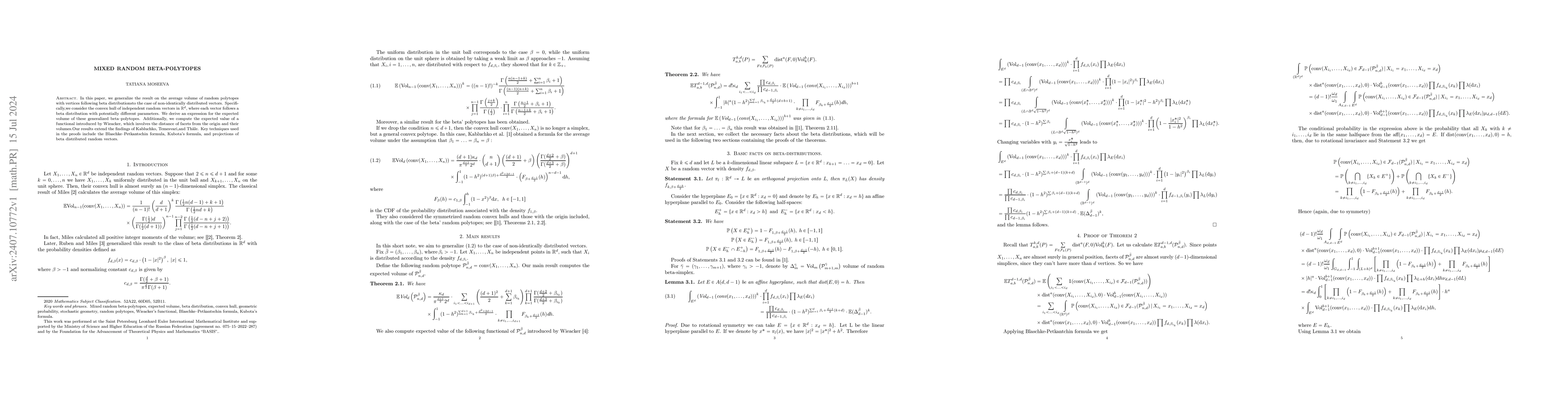 This paper generalizes the average volume of random polytopes whose vertices follow beta distributions to cases with non-identical parameters. It derives an expression for the expected volume of convex hulls formed by independent random vectors in $\mathbb{R}^d$, each following different beta distributions, and computes an additional functional value involving facet distances and volumes, extending prior work by Kabluchko, Temesvari, and Th\"ale.