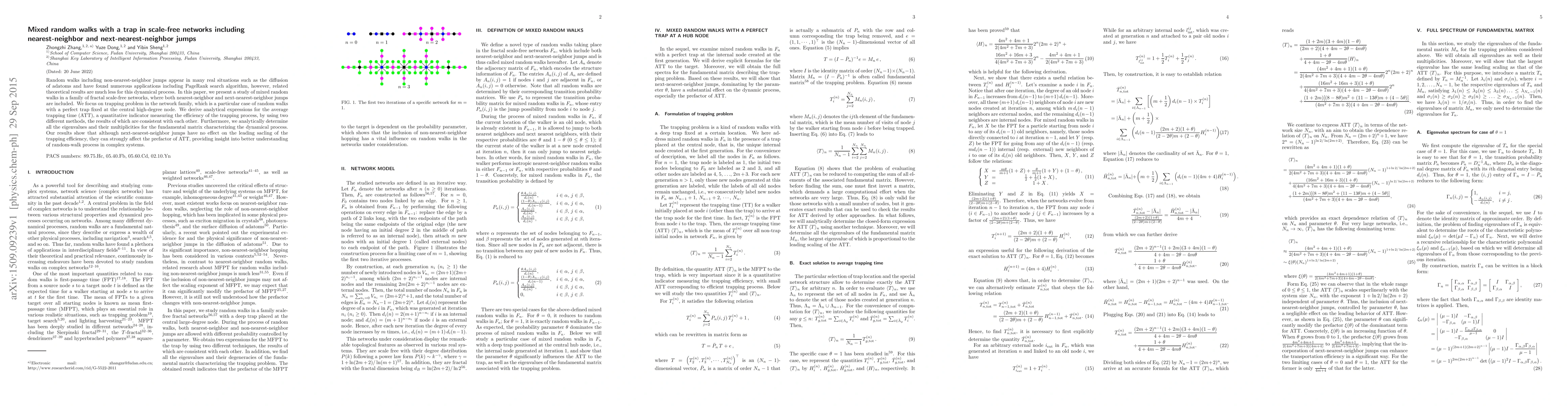 This paper studies mixed random walks on scale-free networks, incorporating both nearest-neighbor and next-nearest-neighbor jumps. It derives analytical expressions for the average trapping time, showing that next-nearest-neighbor jumps affect the trapping efficiency's prefactor while not altering the leading scaling.