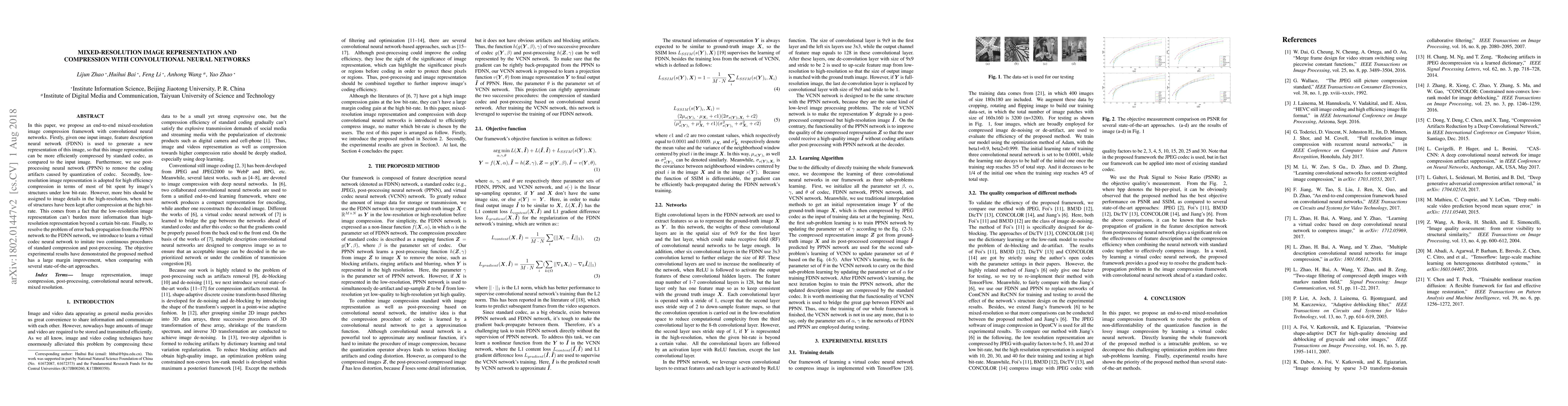 This paper proposes an end-to-end mixed-resolution image compression framework using convolutional neural networks, which employs a feature description neural network for efficient compression and a post-processing neural network to remove coding artifacts. The method also introduces a virtual codec for effective error back-propagation, achieving significant improvements over state-of-the-art methods.
