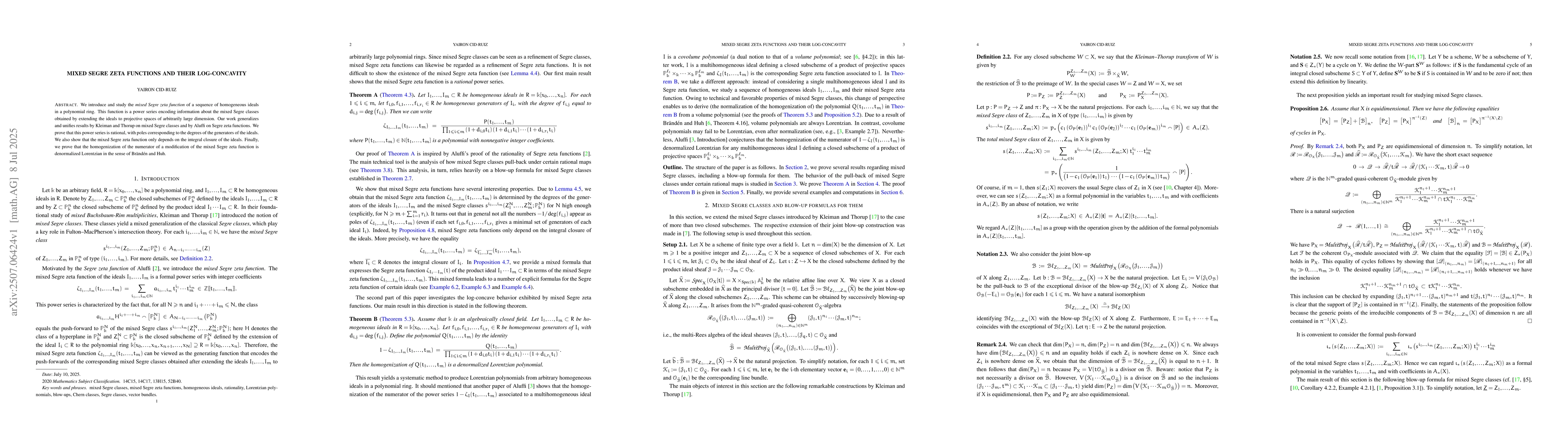 We introduce and study the mixed Segre zeta function of a sequence of homogeneous ideals in a polynomial ring. This function is a power series encoding information about the mixed Segre classes obtained by extending the ideals to projective spaces of arbitrarily large dimension. Our work generalizes and unifies results by Kleiman and Thorup on mixed Segre classes and by Aluffi on Segre zeta functions. We prove that this power series is rational, with poles corresponding to the degrees of the generators of the ideals. We also show that the mixed Segre zeta function only depends on the integral closure of the ideals. Finally, we prove that the homogenization of the numerator of a modification of the mixed Segre zeta function is denormalized Lorentzian in the sense of Br\"and\'en and Huh.