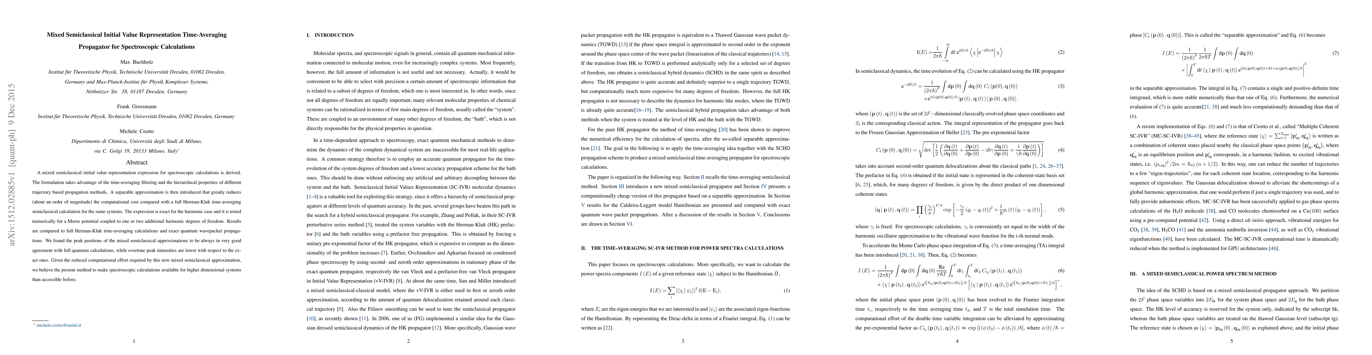 This paper introduces a mixed semiclassical initial value representation for spectroscopic calculations that leverages time-averaging and hierarchical trajectory methods, significantly reducing computational costs. The new method shows good agreement with full quantum calculations for peak positions but slightly lower intensities for overtones.