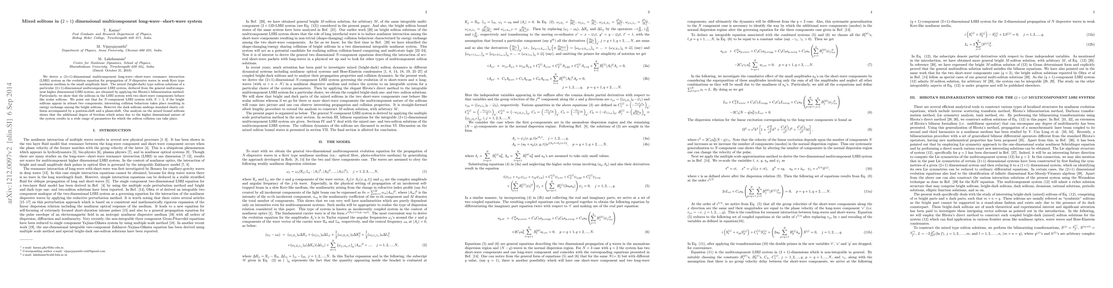 Researchers discovered mixed solitons in a specific (2+1)-dimensional multicomponent system, which exhibit unique collision behaviors when interacting with each other.