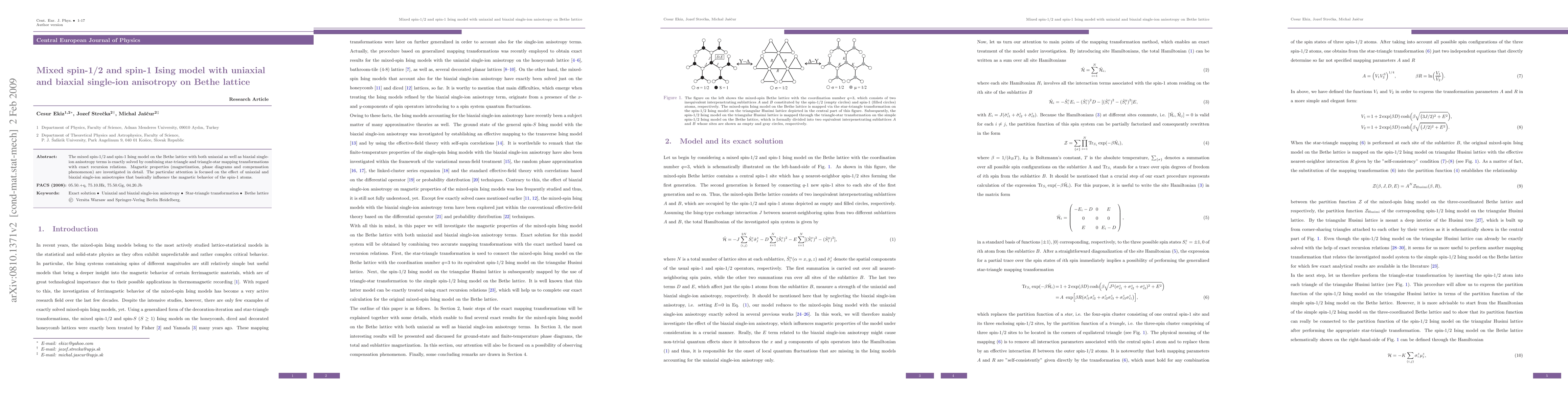 This paper exactly solves the mixed spin-1/2 and spin-1 Ising model on the Bethe lattice with uniaxial and biaxial single-ion anisotropy using star-triangle transformations. It investigates magnetic properties, including magnetization, phase diagrams, and the compensation phenomenon, highlighting the influence of different anisotropies on spin-1 atoms.