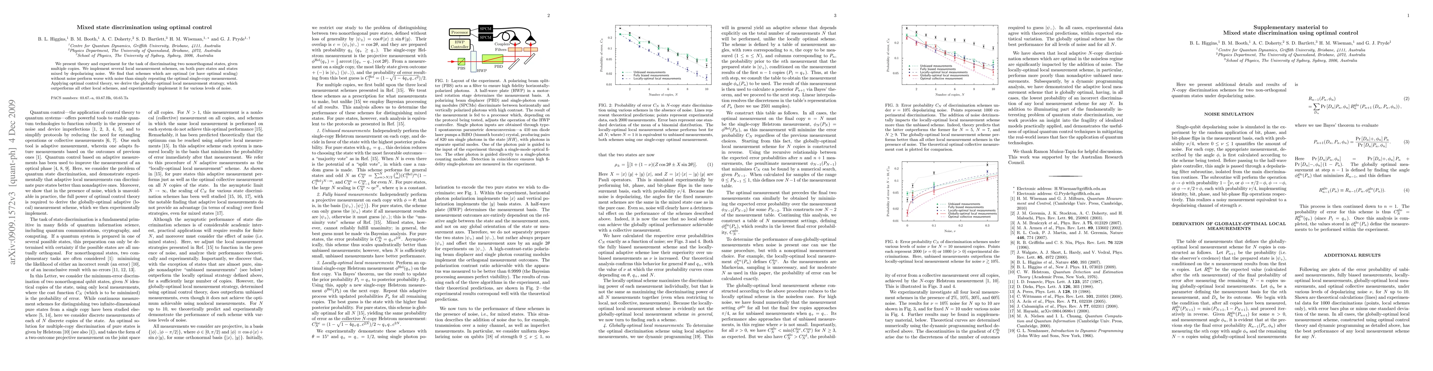 We present theory and experiment for the task of discriminating two nonorthogonal states, given multiple copies. We implement several local measurement schemes, on both pure states and states mixed by depolarizing noise. We find that schemes which are optimal (or have optimal scaling) without noise perform worse with noise than simply repeating the optimal single-copy measurement. Applying optimal control theory, we derive the globally optimal local measurement strategy, which outperforms all other local schemes, and experimentally implement it for various levels of noise.