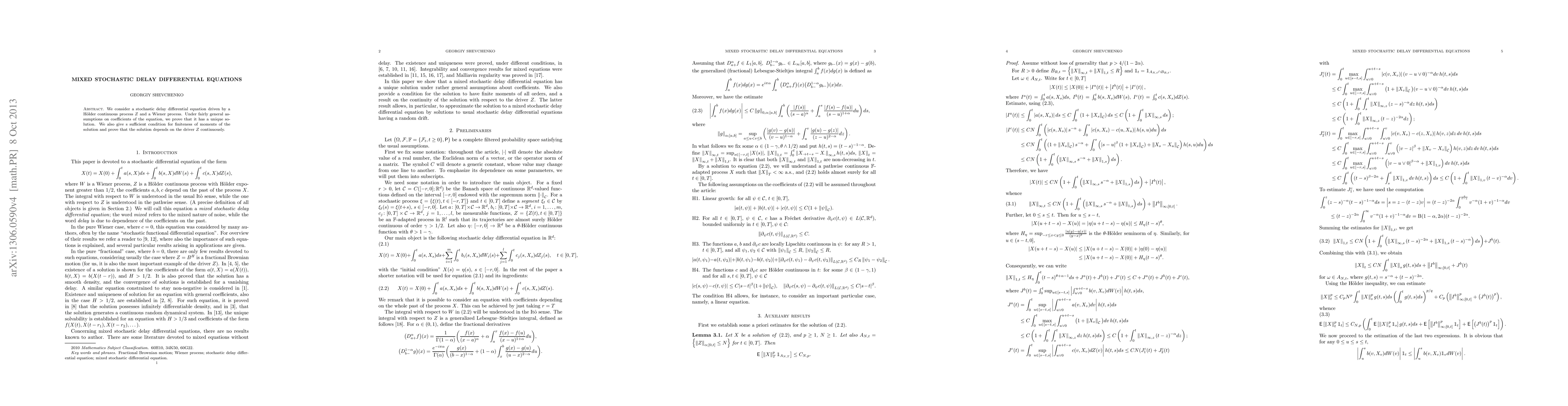 We consider a stochastic delay differential equation driven by a Holder continuous process and a Wiener process. Under fairly general assumptions on its coefficients, we prove that this equation is uniquely solvable. We also give sufficient conditions for finiteness of its moments and establish a limit theorem.