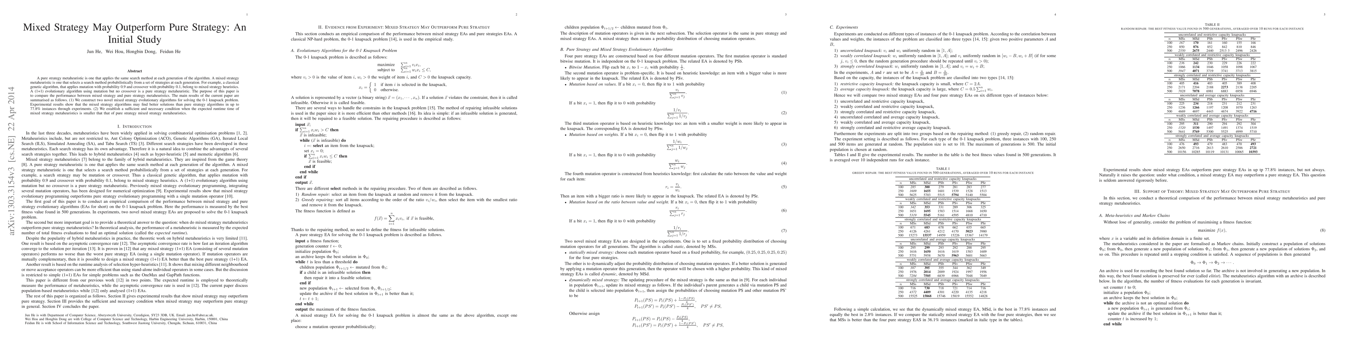 This paper compares mixed strategy meta-heuristics, which select strategies probabilistically, to pure strategy meta-heuristics, which use a single strategy consistently. Experimental results show mixed strategy evolutionary algorithms outperform pure strategies on the 0-1 knapsack problem in up to 77.8% of instances. A Complementary Strategy Theorem is also proven, asserting that mixed strategies can outperform pure strategies if one is complementary to the other.