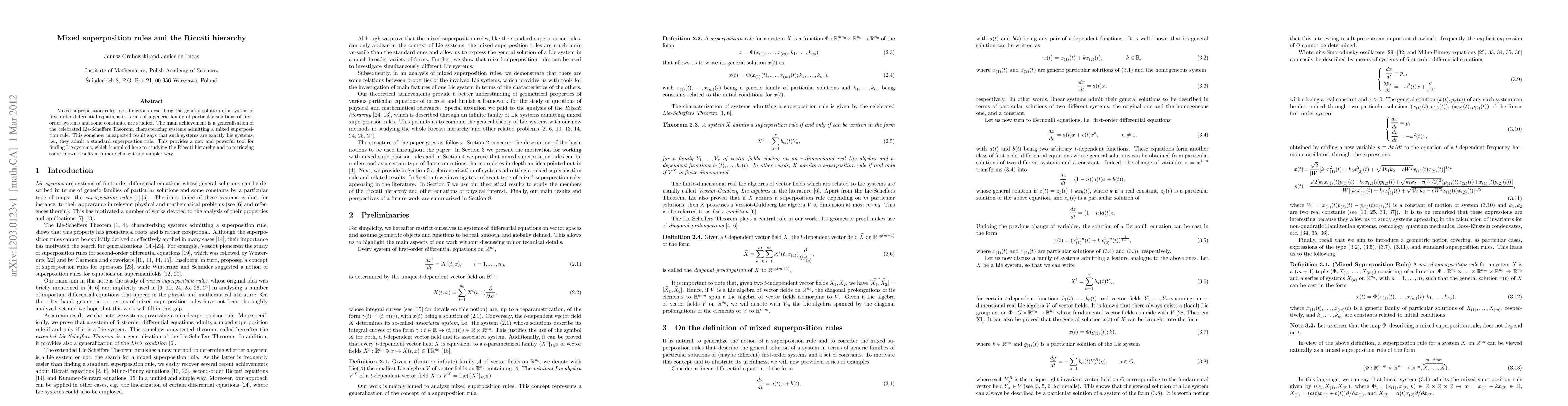 Mixed superposition rules, i.e., functions describing the general solution of a system of first-order differential equations in terms of a generic family of particular solutions of first-order systems and some constants, are studied. The main achievement is a generalization of the celebrated Lie-Scheffers Theorem, characterizing systems admitting a mixed superposition rule. This somehow unexpected result says that such systems are exactly Lie systems, i.e., they admit a standard superposition rule. This provides a new and powerful tool for finding Lie systems, which is applied here to studying the Riccati hierarchy and to retrieving some known results in a more efficient and simpler way.