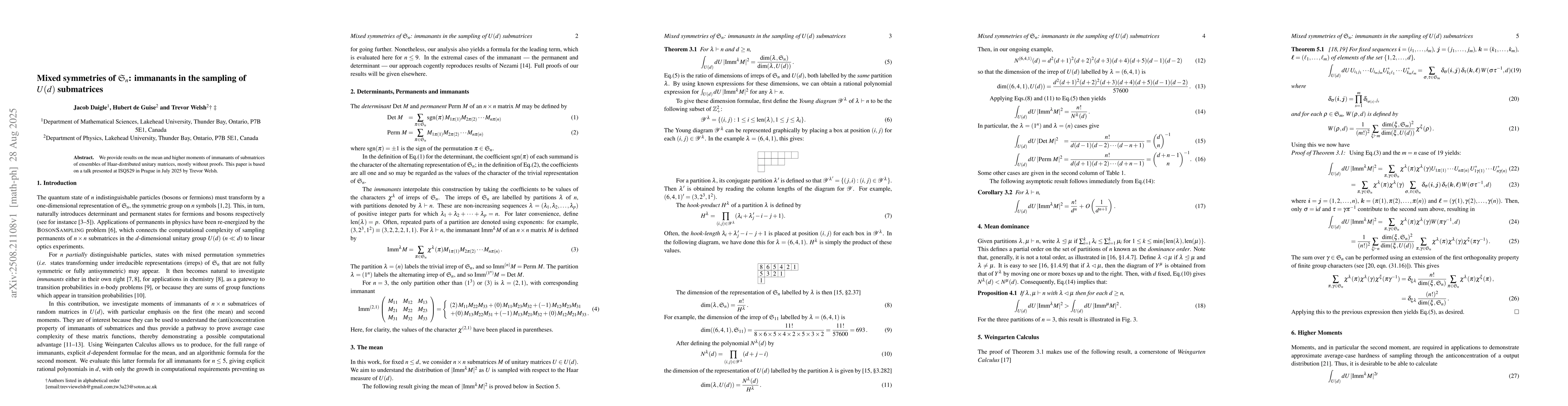 We provide results on the mean and higher moments of immanants of submatrices of ensembles of Haar-distributed unitary matrices, mostly without proofs. This paper is based on a talk presented at ISQS29 in Prague in July 2025 by Trevor Welsh.