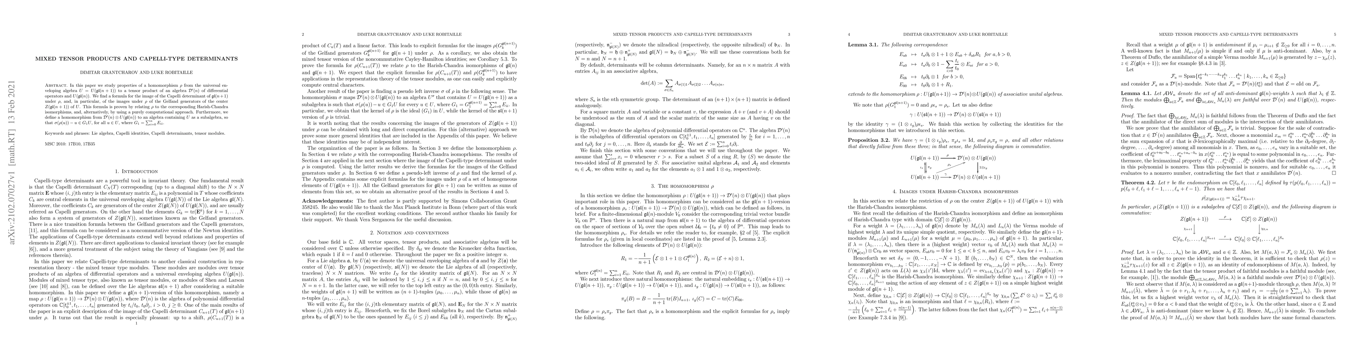 This paper explores the properties of a homomorphism $\rho$ from the universal enveloping algebra $U(\mathfrak{gl}(n+1))$ to a tensor product involving $\mathcal D'(n)$ and $U(\mathfrak{gl}(n))$, deriving a formula for the image of the Capelli determinant under $\rho$ and defining a related homomorphism to an algebra containing $U$ as a subalgebra.
