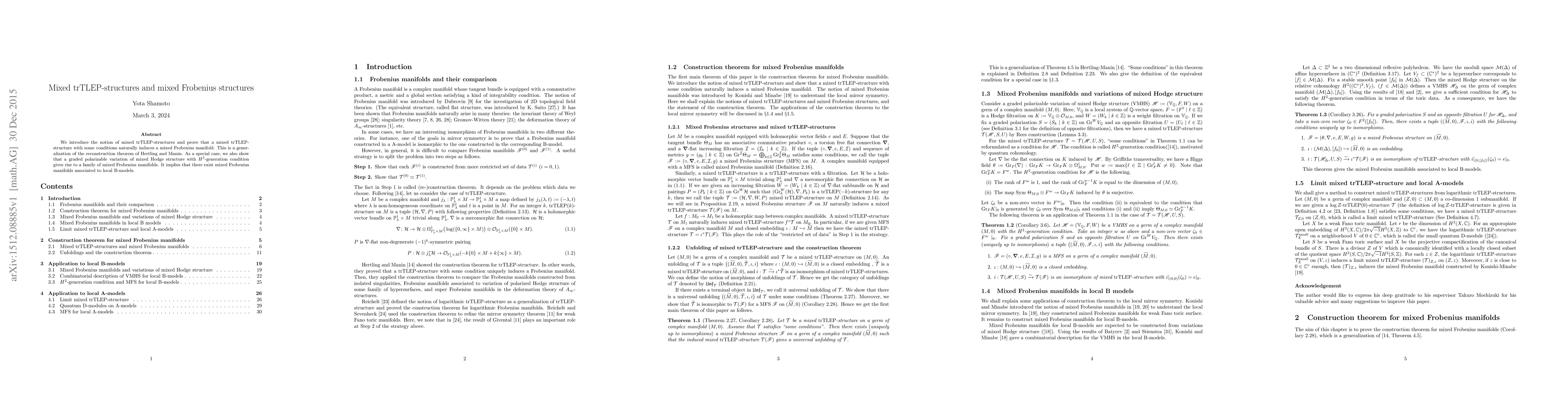 This paper introduces mixed trTLEP-structures and proves their natural induction into mixed Frobenius manifolds under certain conditions, generalizing previous reconstruction theorems. It also demonstrates that graded polarizable variations of mixed Hodge structures with specific conditions yield families of mixed Frobenius manifolds, applicable to local B-models.