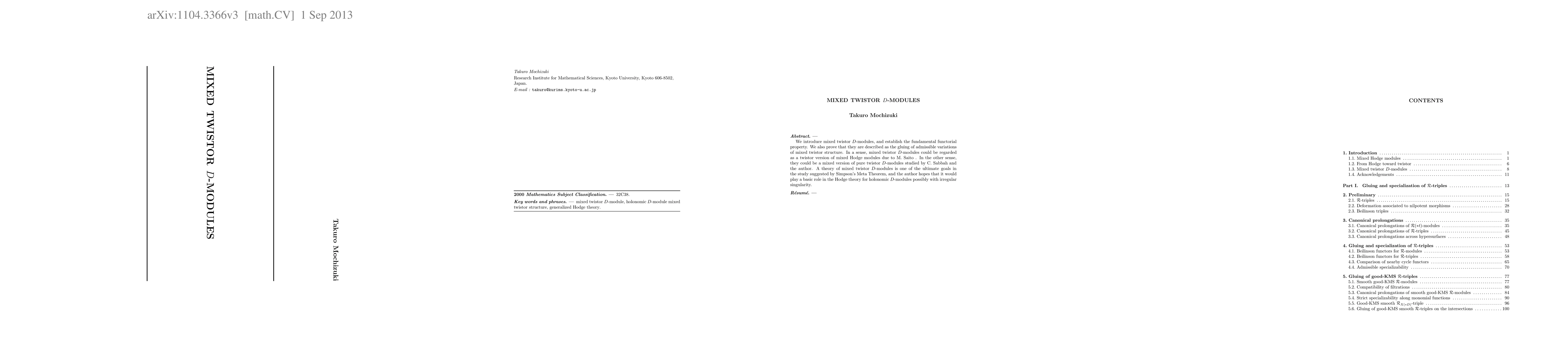 This paper introduces mixed twistor $D$-modules, establishing their fundamental functorial properties and demonstrating their description via the gluing of admissible variations of mixed twistor structure. The authors propose that these modules serve as a twistor version of mixed Hodge modules and a mixed version of pure twistor $D$-modules, aiming to contribute to the broader Hodge theory for holonomic $D$-modules.