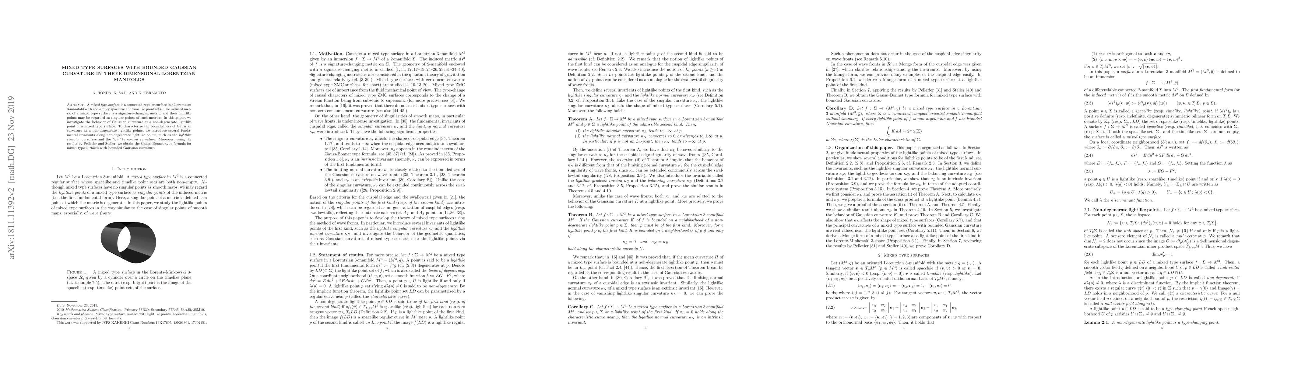 A mixed type surface is a connected regular surface in a Lorentzian 3-manifold with non-empty spacelike and timelike point sets. The induced metric of a mixed type surface is a signature-changing metric, and their lightlike points may be regarded as singular points of such metrics. In this paper, we investigate the behavior of Gaussian curvature at a non-degenerate lightlike point of a mixed type surface. To characterize the boundedness of Gaussian curvature at a non-degenerate lightlike points, we introduce several fundamental invariants along non-degenerate lightlike points, such as the lightlike singular curvature and the lightlike normal curvature. Moreover, using the results by Pelletier and Steller, we obtain the Gauss-Bonnet type formula for mixed type surfaces with bounded Gaussian curvature.