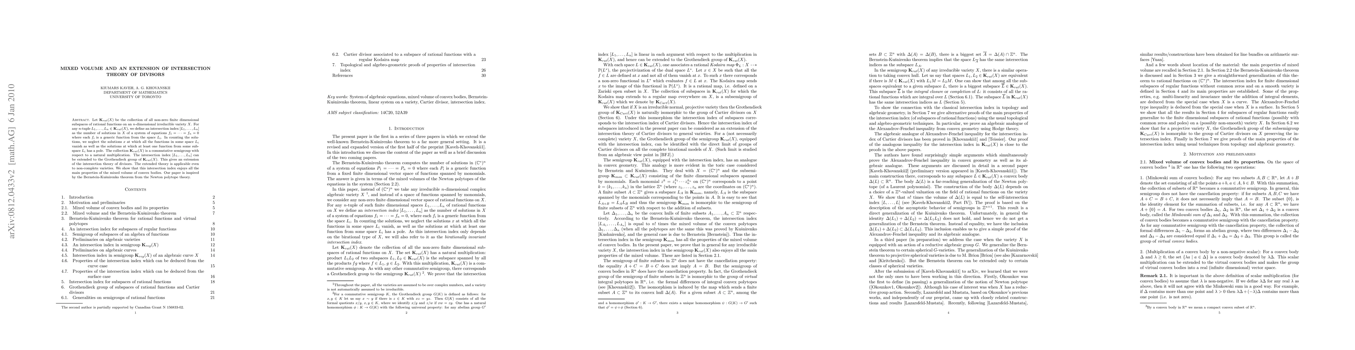 Let K(X) be the collection of all non-zero finite dimensional subspaces of rational functions on an n-dimensional irreducible variety X. For any n-tuple L_1,..., L_n in K(X), we define an intersection index [L_1,..., L_n] as the number of solutions in X of a system of equations f_1 = ... = f_n = 0 where each f_i is a generic function from the space L_i. In counting the solutions, we neglect the solutions x at which all the functions in some space L_i vanish as well as the solutions at which at least one function from some subspace L_i has a pole. The collection K(X) is a commutative semigroup with respect to a natural multiplication. The intersection index [L_1,..., L_n] can be extended to the Grothendieck group of K(X). This gives an extension of the intersection theory of divisors. The extended theory is applicable even to non-complete varieties. We show that this intersection index enjoys all the main properties of the mixed volume of convex bodies. Our paper is inspired by the Bernstein-Kushnirenko theorem from the Newton polytope theory.