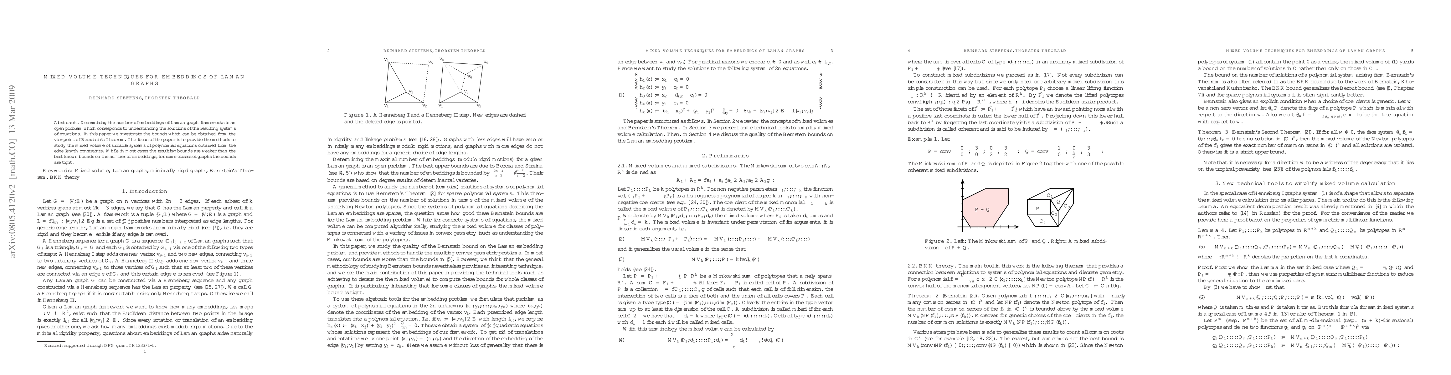 Determining the number of embeddings of Laman graph frameworks is an open problem which corresponds to understanding the solutions of the resulting systems of equations. In this paper we investigate the bounds which can be obtained from the viewpoint of Bernstein's Theorem. The focus of the paper is to provide the methods to study the mixed volume of suitable systems of polynomial equations obtained from the edge length constraints. While in most cases the resulting bounds are weaker than the best known bounds on the number of embeddings, for some classes of graphs the bounds are tight.