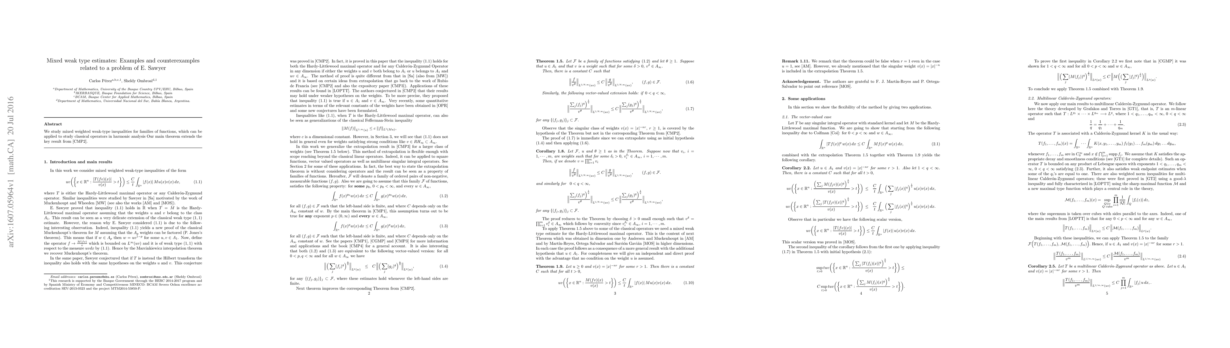 This paper investigates mixed weighted weak-type inequalities for families of functions, extending previous results by Cruz-Uribe, Martell, and Perez. It provides examples and counterexamples relevant to a conjecture posed by E. Sawyer in harmonic analysis.