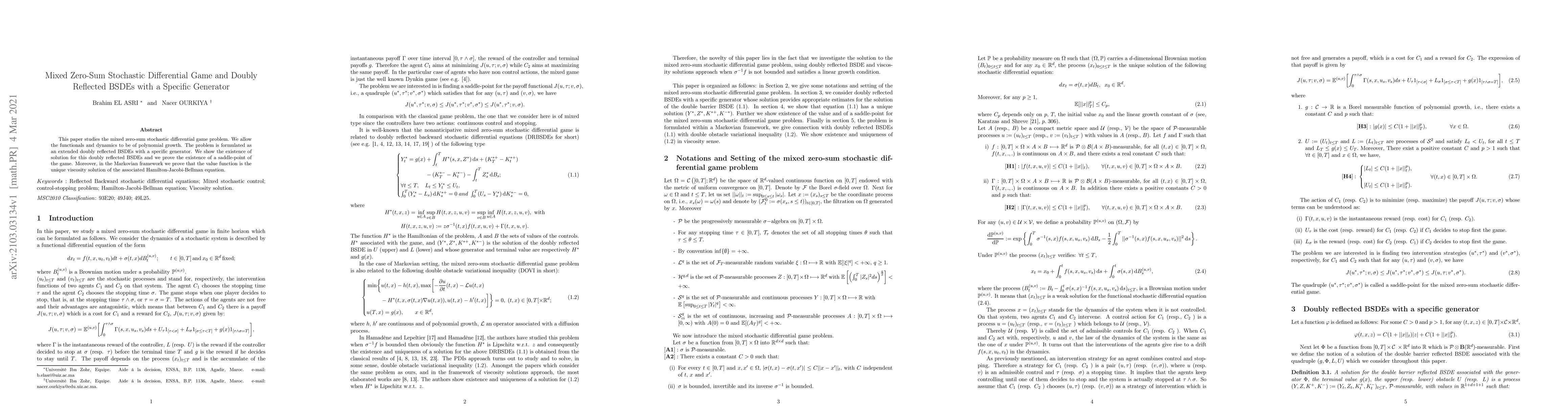 This paper investigates the mixed zero-sum stochastic differential game formulated as doubly reflected BSDEs with polynomial growth. It proves the existence of solutions for these BSDEs and demonstrates the existence of a saddle-point for the game, with the value function being the unique viscosity solution of the associated Hamilton-Jacobi-Bellman equation in the Markovian framework.