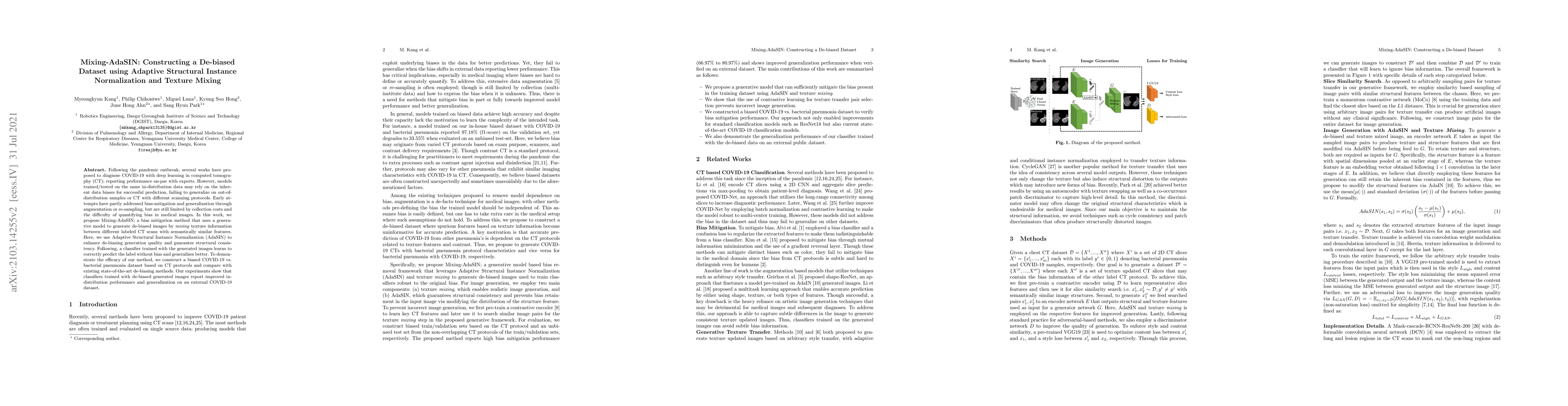 This paper proposes Mixing-AdaSIN, a method that generates de-biased images by mixing texture information between labeled CT scans to improve classifier performance and generalize better on out-of-distribution samples.