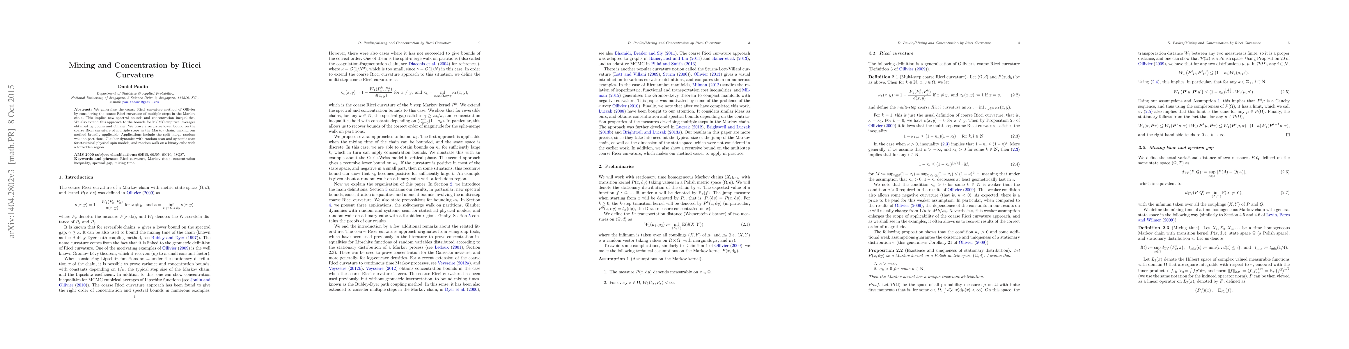 This research paper generalizes the coarse Ricci curvature method to multiple steps in a Markov chain, providing new spectral bounds and concentration inequalities that apply to various applications including MCMC empirical averages.