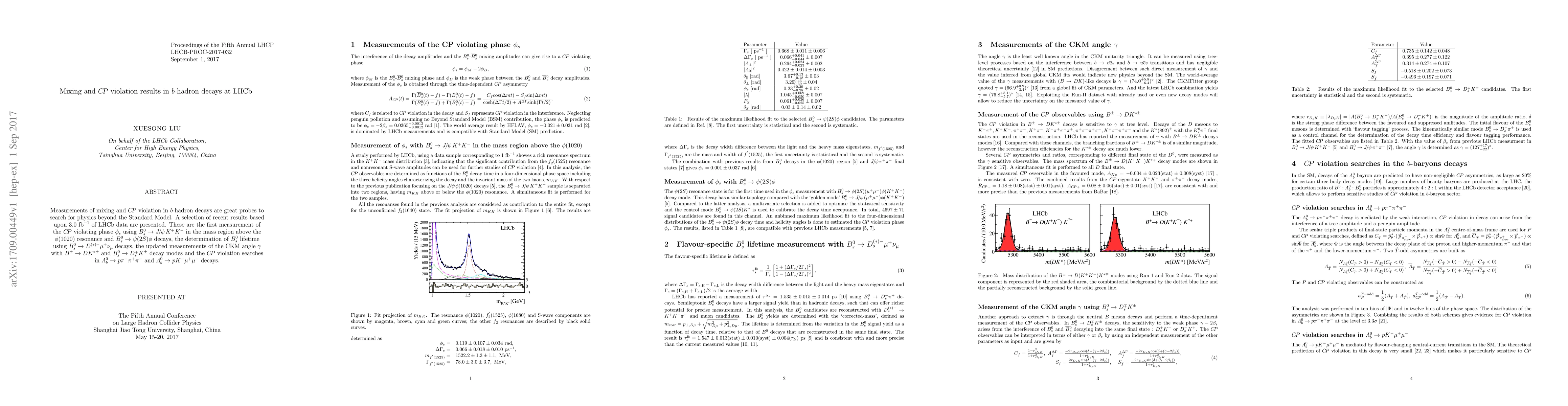 Measurements of mixing and $CP$ violation in $b$-hadron decays are great probes to search for physics beyond the Standard Model. A selection of recent results based upon $3.0\ \mathrm{fb}^{-1}$ of LHCb data are presented. These are the first measurement of the $CP$ violating phase $\phi_{s}$ using $B_{s}^{0}\to J/\psi K^{+}K^{-}$ in the mass region above the $\phi(1020)$ resonance and $B_{s}^{0}\to \psi(2S) \phi$ decays, the determination of $B_{s}^{0}$ lifetime using $B_{s}^{0}\to D^{(*)-}\mu^{+}\nu_{\mu}$ decays, the updated measurements of the CKM angle $\gamma$ with $B^{\pm}\to D K^{*\pm}$ and $B_{s}^{0} \to D_{s}^{\mp}K^{\pm}$ decay modes and the CP violation searches in $\varLambda^{0}_{b}\to p\pi^{-}\pi^{+}\pi^{-}$ and $\varLambda^{0}_{b}\to pK^{-}\mu^{+}\mu^{-}$ decays.