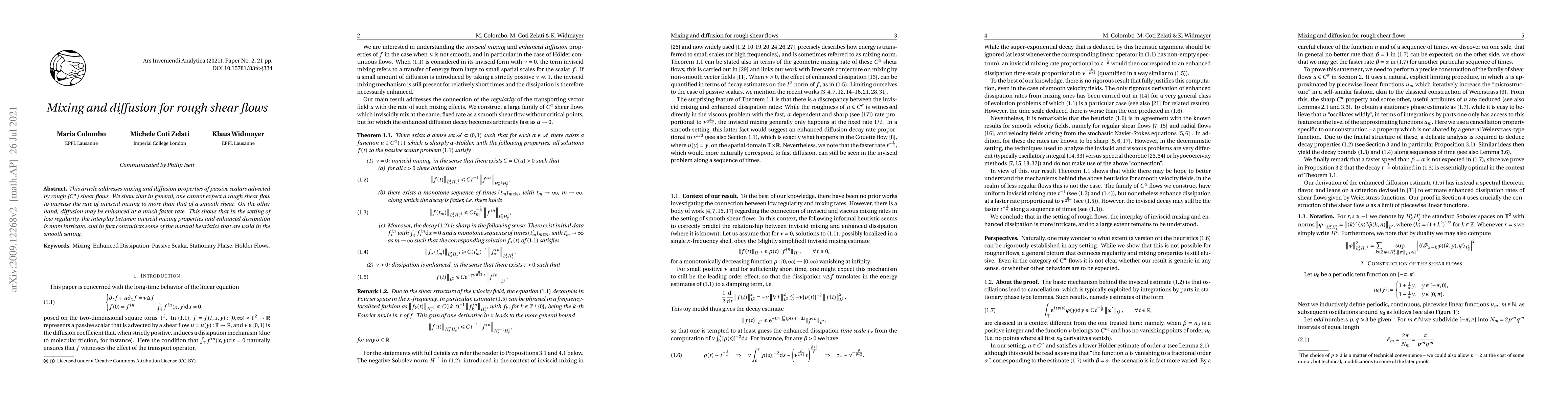 This paper investigates how passive scalars are mixed and diffused by rough shear flows, finding that while rough flows do not enhance inviscid mixing beyond smooth flows, they significantly accelerate diffusion, challenging conventional heuristics about mixing in smooth settings.