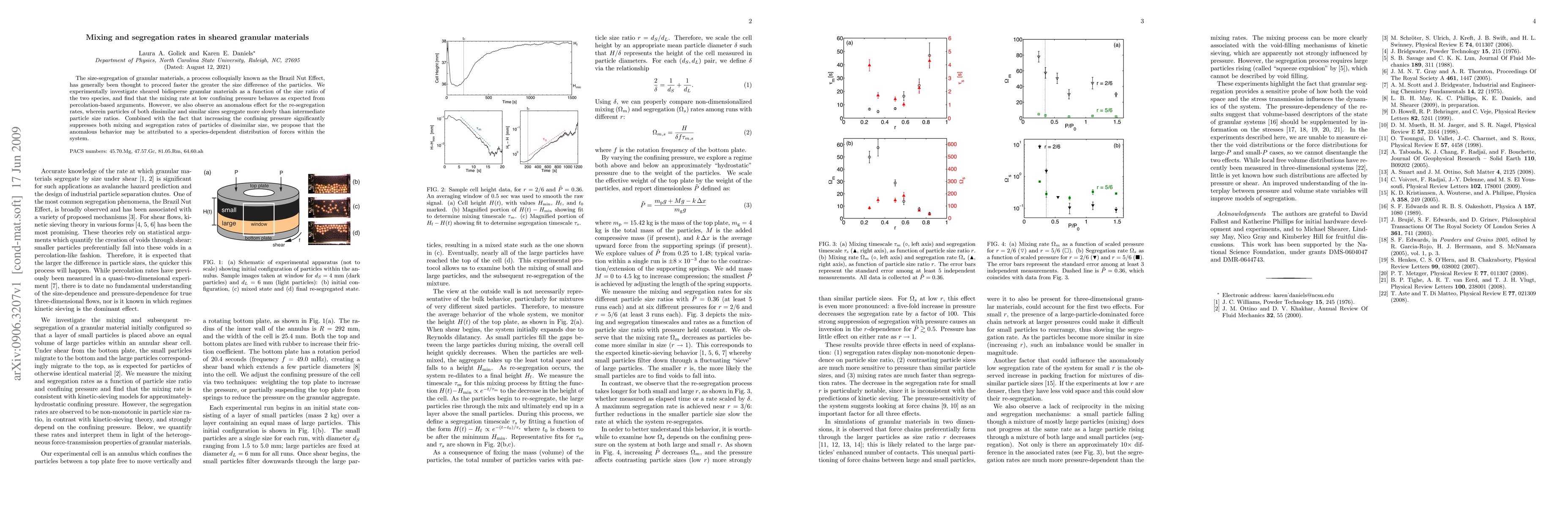This paper investigates size-segregation in sheared granular materials, finding that mixing rates align with percolation theory but segregation rates are slower for both dissimilar and similar sizes compared to intermediate ratios. The anomalous segregation behavior is hypothesized to stem from a species-dependent force distribution, with increased pressure suppressing segregation rates for dissimilar particles.