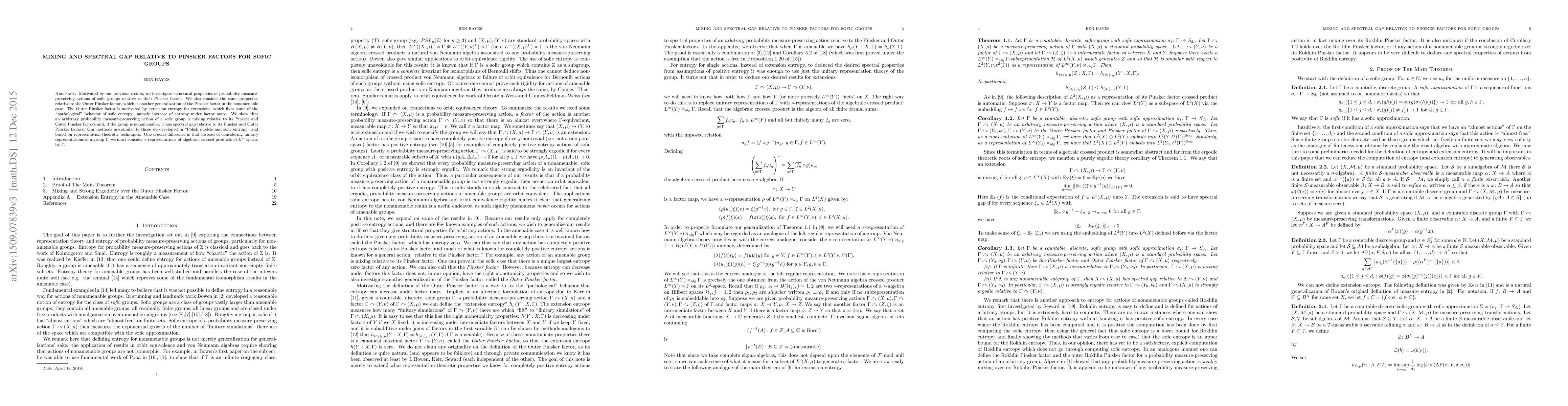 Motivated by our previous results, we investigate structural properties of probability measure-preserving actions of sofic groups relative to their Pinsker factor. We also consider the same properties relative to the Outer Pinsker factor, which is another generalization of the Pinsker factor in the nonamenable case. The Outer Pinsker factor is motivated by extension entropy for extensions, which fixes some of the "pathological" behavior of sofic entropy: namely increase of entropy under factor maps. We show that an arbitrary probability measure-preserving action of a sofic group is mixing relative to its Pinsker and Outer Pinsker factors and, if the group is nonamenable, it has spectral gap relative to its Pinsker and Outer Pinsker factors. Our methods are similar to those we developed in "Polish models and sofic entropy" and based on representation-theoretic techniques. One crucial difference is that instead of considering unitary representations of a group we must consider *-representations of algebraic crossed products.