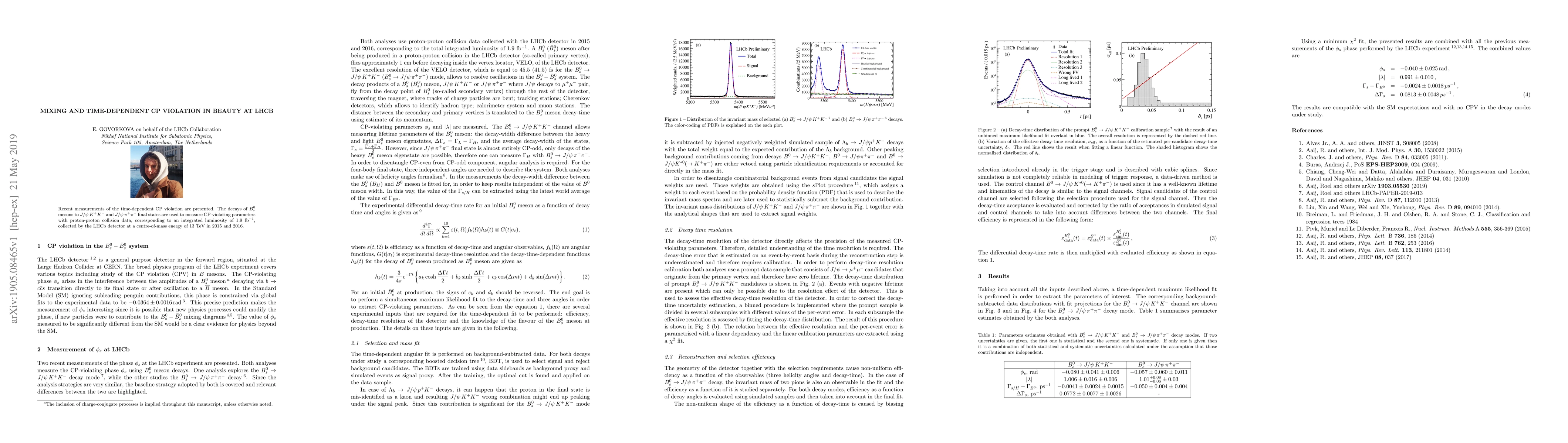 Recent measurements of the time-dependent CP violation are presented. The decays of $B_{s}^{0}$ mesons to $J/\psi\,K^+ K^-$ and $J/\psi\,\pi^+ \pi^-$ final states are used to measure CP-violating parameters with proton-proton collision data, corresponding to an integrated luminosity of 1.9 fb$^{-1}$, collected by the LHCb detector at a centre-of-mass energy of 13 TeV in 2015 and 2016.