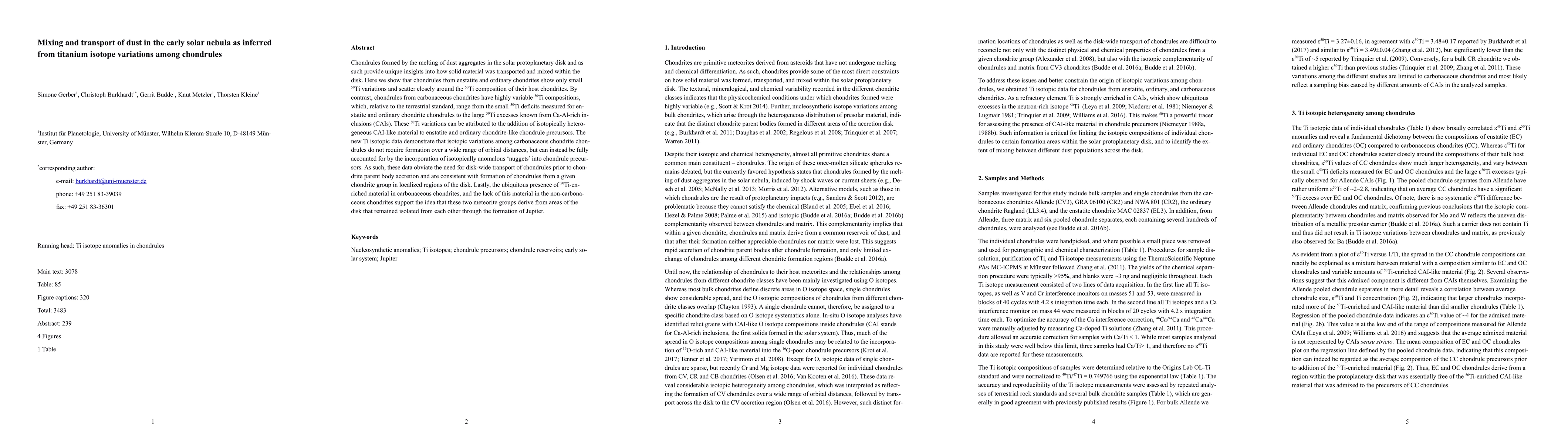 This paper investigates titanium isotope variations in chondrules to understand dust mixing and transport in the early solar nebula. It finds that chondrules from enstatite and ordinary chondrites show minimal 50Ti variation, while carbonaceous chondrite chondrules exhibit significant 50Ti variability, suggesting localized formation and limited disk-wide transport of chondrules.