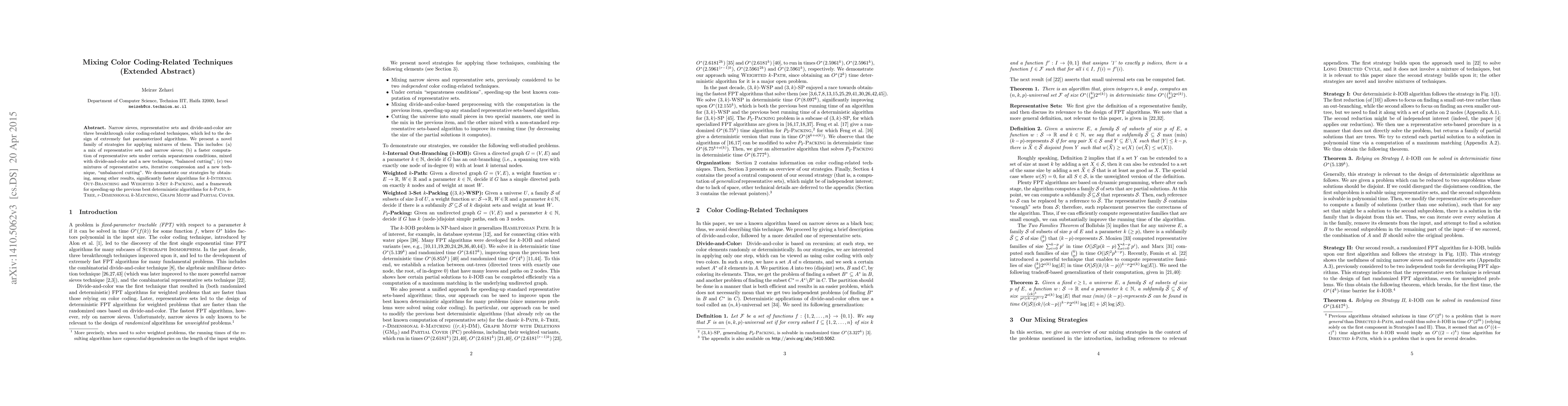 Narrow sieves, representative sets and divide-and-color are three breakthrough color coding-related techniques, which led to the design of extremely fast parameterized algorithms. We present a novel family of strategies for applying mixtures of them. This includes: (a) a mix of representative sets and narrow sieves; (b) a faster computation of representative sets under certain separateness conditions, mixed with divide-and-color and a new technique, "balanced cutting"; (c) two mixtures of representative sets, iterative compression and a new technique, "unbalanced cutting". We demonstrate our strategies by obtaining, among other results, significantly faster algorithms for $k$-Internal Out-Branching and Weighted 3-Set $k$-Packing, and a framework for speeding-up the previous best deterministic algorithms for $k$-Path, $k$-Tree, $r$-Dimensional $k$-Matching, Graph Motif and Partial Cover.