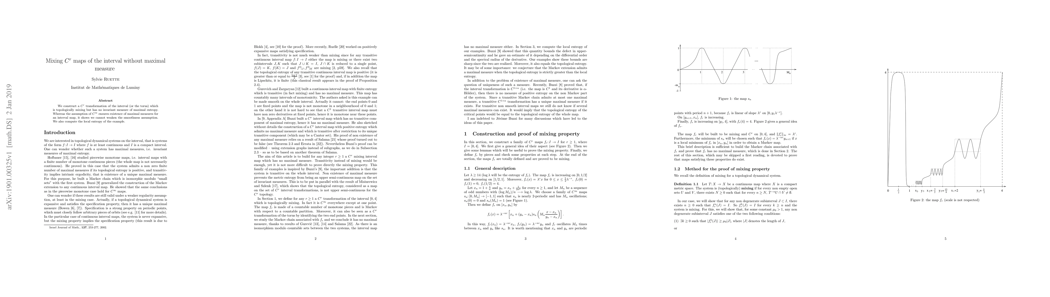 The paper provides a concrete example of a topologically mixing C^r map without maximal measure, along with a computation of its local entropy.