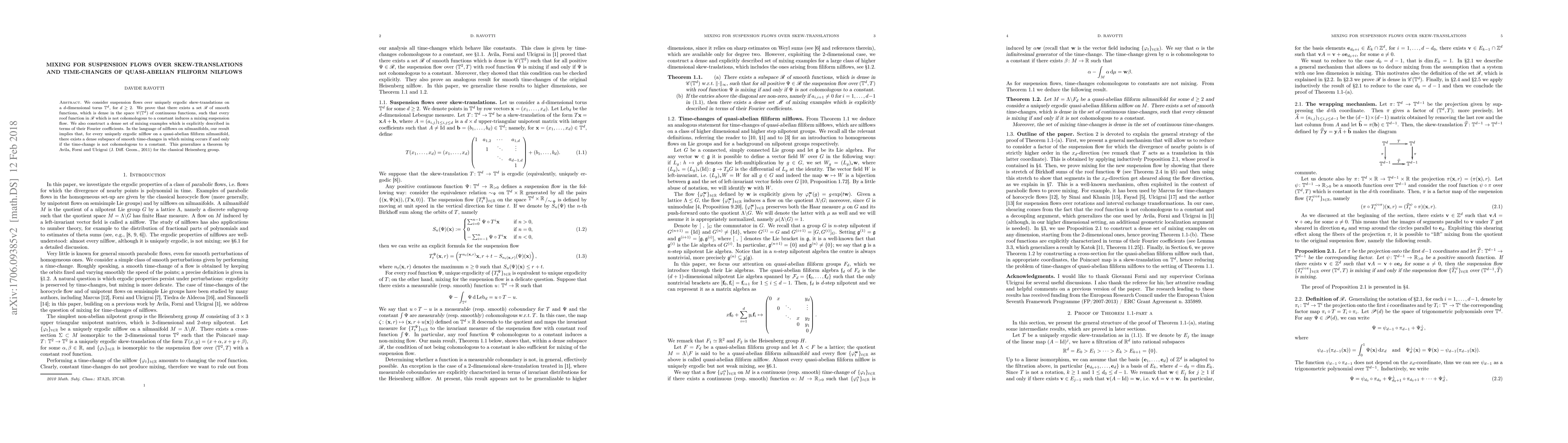 We consider suspension flows over uniquely ergodic skew-translations on a $d$-dimensional torus $\mathbb{T}^d$, for $d \geq 2$. We prove that there exists a set $\mathscr{R}$ of smooth functions, which is dense in the space $\mathscr{C}(\mathbb{T}^d)$ of continuous functions, such that every roof function in $\mathscr{R}$ which is not cohomologous to a constant induces a mixing suspension flow. We also construct a dense set of mixing examples which is explicitly described in terms of their Fourier coefficients. In the language of nilflows on nilmanifolds, our result implies that, for every uniquely ergodic nilflow on a quasi-abelian filiform nilmanifold, there exists a dense subspace of smooth time-changes in which mixing occurs if and only if the time-change is not cohomologous to a constant. This generalizes a theorem by Avila, Forni and Ulcigrai (J. Diff. Geom., 2011) for the classical Heisenberg group.