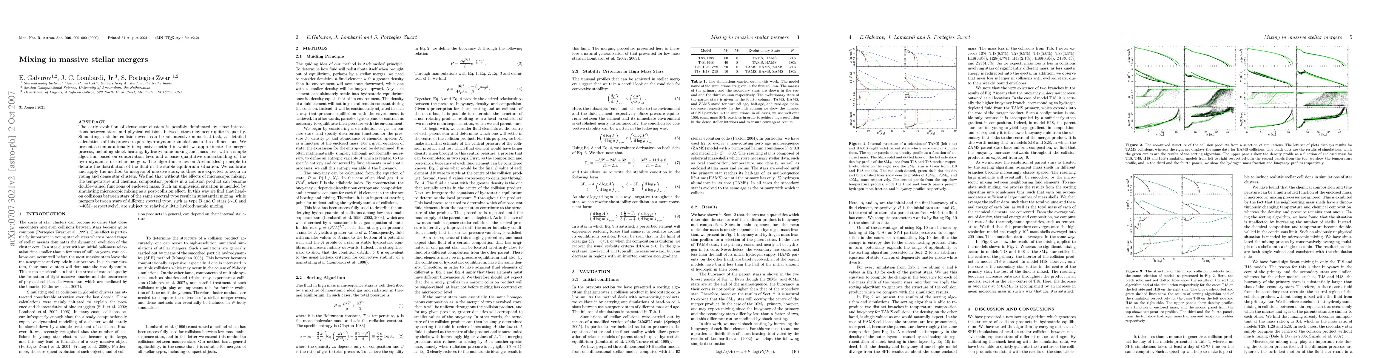 This paper introduces a computationally efficient algorithm to simulate stellar mergers in dense star clusters, focusing on massive stars. The method approximates hydrodynamic mixing and mass loss during mergers, resolving unphysical double-valued temperature and composition profiles by incorporating microscopic mixing post-collision, showing significant mixing in same-type star mergers but less in different-type star mergers.