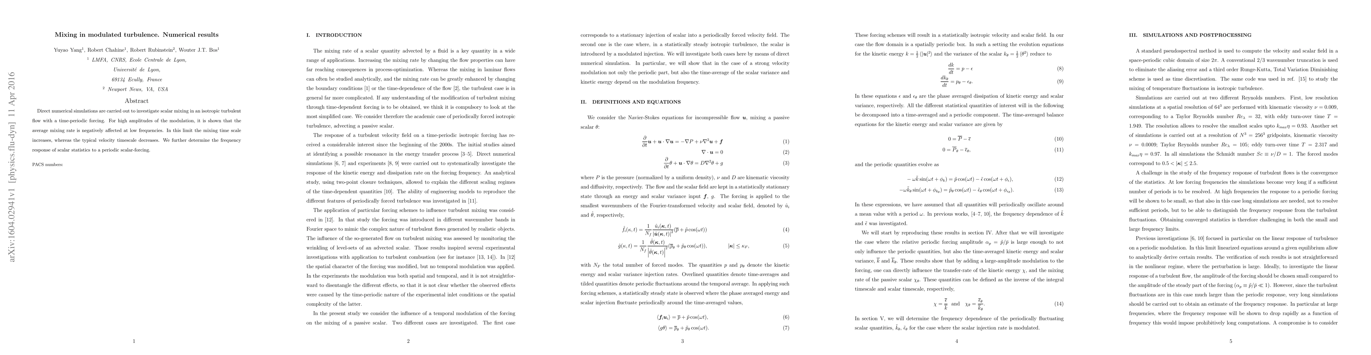 Direct numerical simulations are carried out to investigate scalar mixing in an isotropic turbulent flow with a time-periodic forcing. For high amplitudes of the modulation, it is shown that the average mixing rate is negatively affected at low frequencies. In this limit the mixing time scale increases, whereas the typical velocity timescale decreases. We further determine the frequency response of scalar statistics to a periodic scalar-forcing.