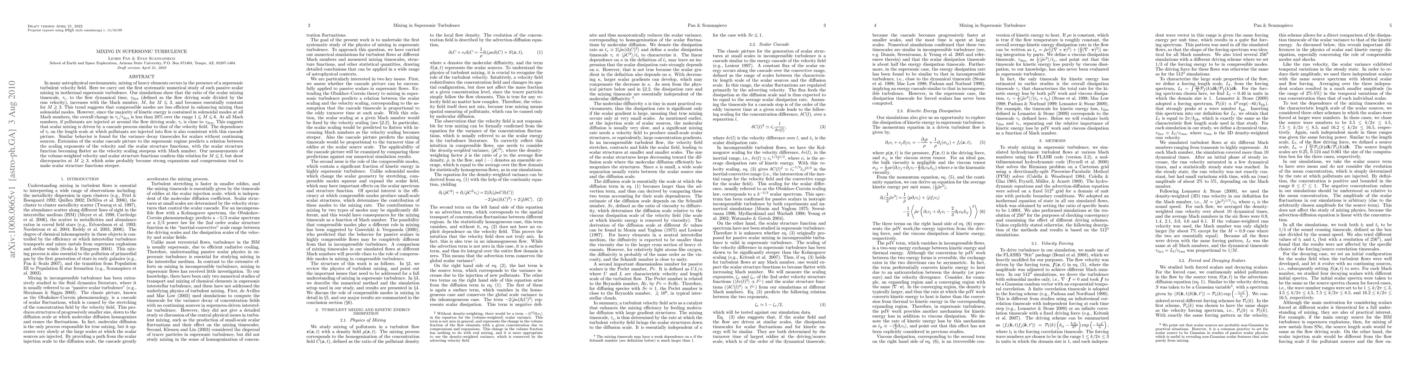 In many astrophysical environments, mixing of heavy elements occurs in the presence of a supersonic turbulent velocity field. Here we carry out the first systematic numerical study of such passive scalar mixing in isothermal supersonic turbulence. Our simulations show that the ratio of the scalar mixing timescale, $\tau_{\rm c}$, to the flow dynamical time, $\tau_{\rm dyn}$ (defined as the flow driving scale divided by the rms velocity), increases with the Mach number, $M$, for $M \lsim3$, and becomes essentially constant for $M \gsim3.$ This trend suggests that compressible modes are less efficient in enhancing mixing than solenoidal modes. However, since the majority of kinetic energy is contained in solenoidal modes at all Mach numbers, the overall change in $\tau_{\rm c}/\tau_{\rm dyn}$ is less than 20\% over the range $1 \lsim M \lsim 6$. At all Mach numbers, if pollutants are injected at around the flow driving scale, $\tau_{\rm c}$ is close to $\tau_{\rm dyn}.$ This suggests that scalar mixing is driven by a cascade process similar to that of the velocity field. The dependence of $\tau_{\rm c}$ on the length scale at which pollutants are injected into flow is also consistent with this cascade picture. Similar behavior is found for the variance decay timescales for scalars without continuing sources. Extension of the scalar cascade picture to the supersonic regime predicts a relation between the scaling exponents of the velocity and the scalar structure functions, with the scalar structure function becoming flatter as the velocity scaling steepens with Mach number. Our measurements of the volume-weighted velocity and scalar structure functions confirm this relation for $M\lsim 2,$ but show discrepancies at $M \gsim 3$.